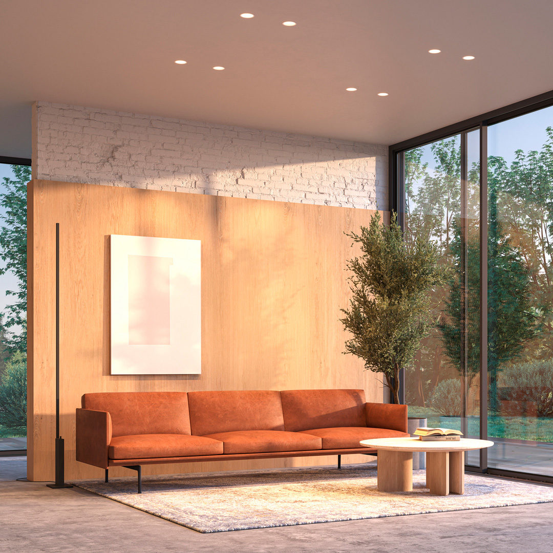 The sophistication of recessed lighting. Buddy is here to maximise the luminous performance of the classic recessed luminaire. It emerges with a solid and purposeful design, greater energy savings and excellent visual comfort. The product family comes in several versions with four opening angles -flood, medium, spot and super spot-. The dim to warm technology enables Buddy to facilitate comfort to the space by dimming the intensity and colour temperature. Furthermore, with the tunable White feature it can be controlled independently. Its four versions per position demonstrate its versatility: recessed, trimless, tilt and the tilt trimless version, which maintains its light output at all opening angles.