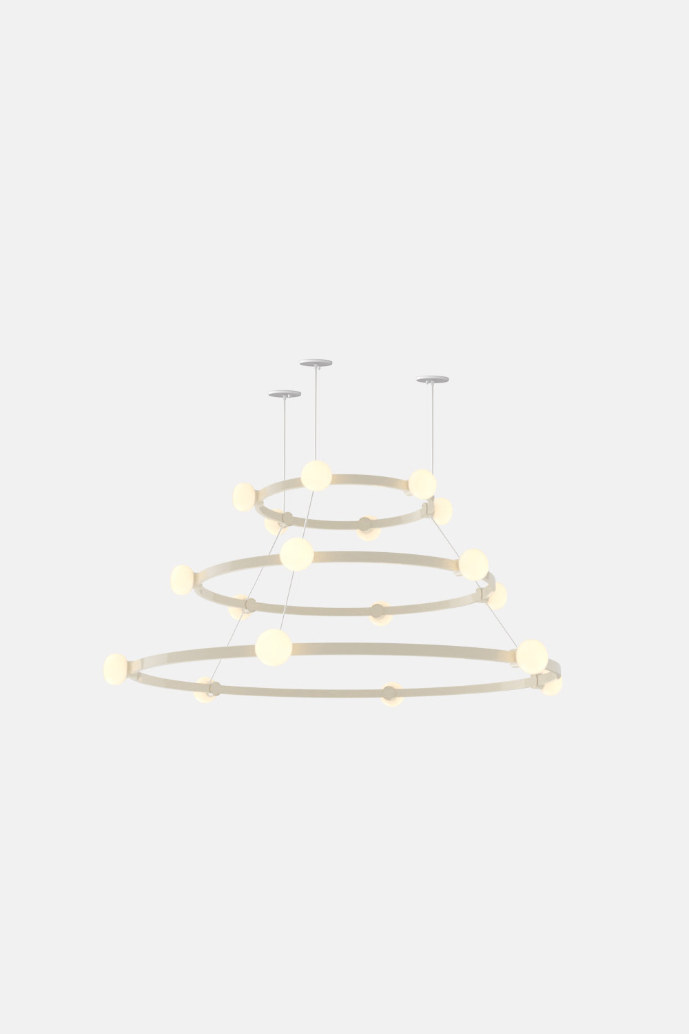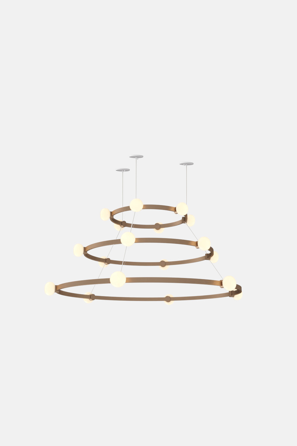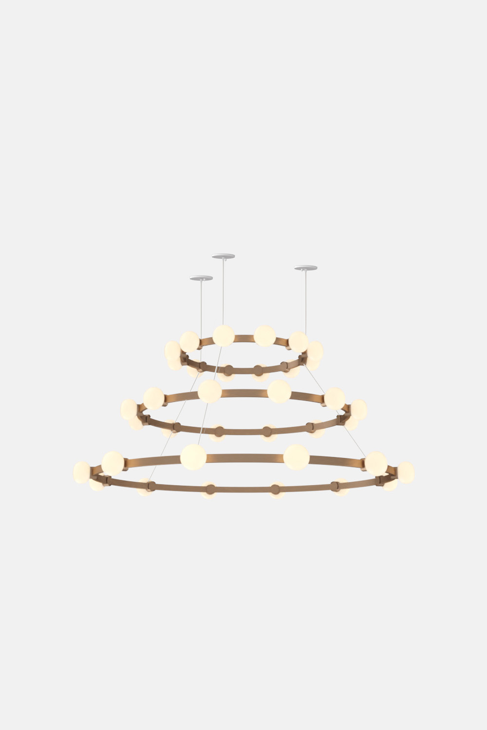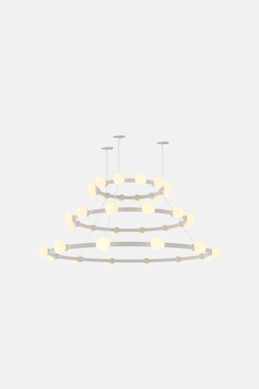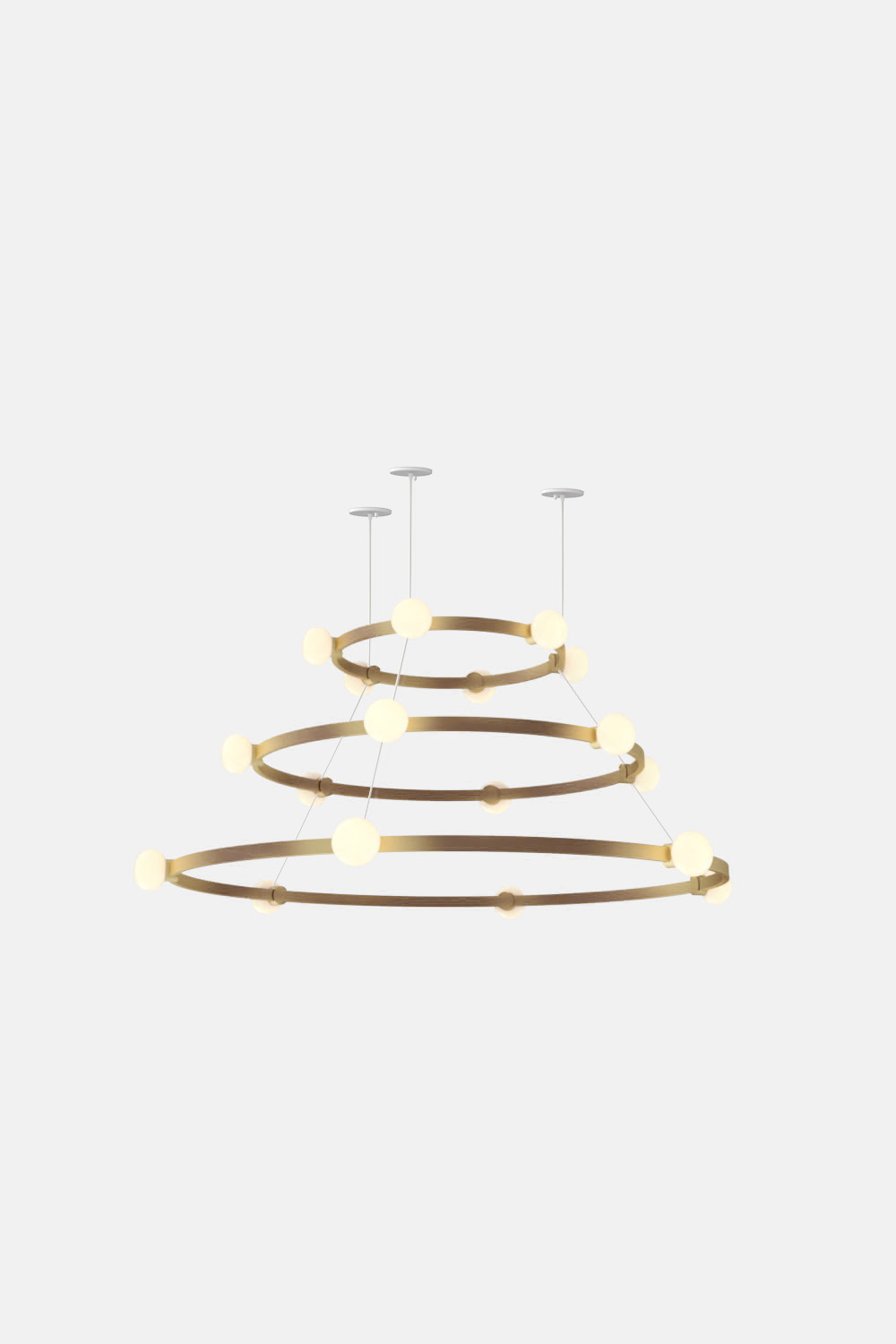 The Cinema Chandelier makes a bold statement with minimal effort, featuring a simple circular frame in a rich metal or powder coated finish embellished by the warm glow of opal glass fixtures. Evocative of Old Hollywood’s charm, Cinema’s theatrical features are customizable to various compositions: The rings are available in stackable four-, six- or eight-foot diameters.