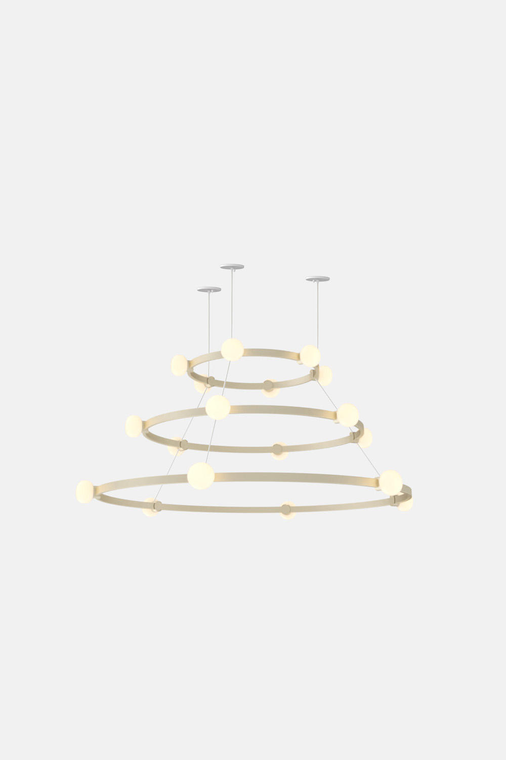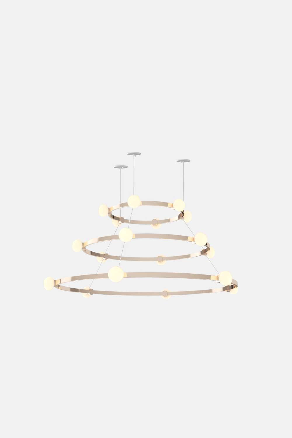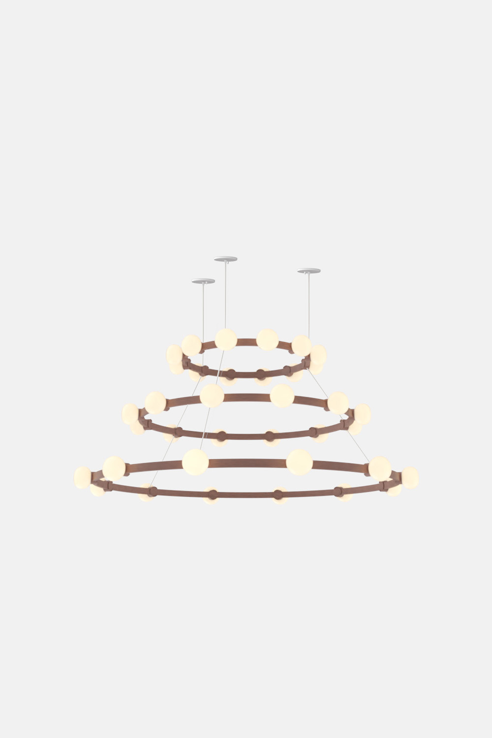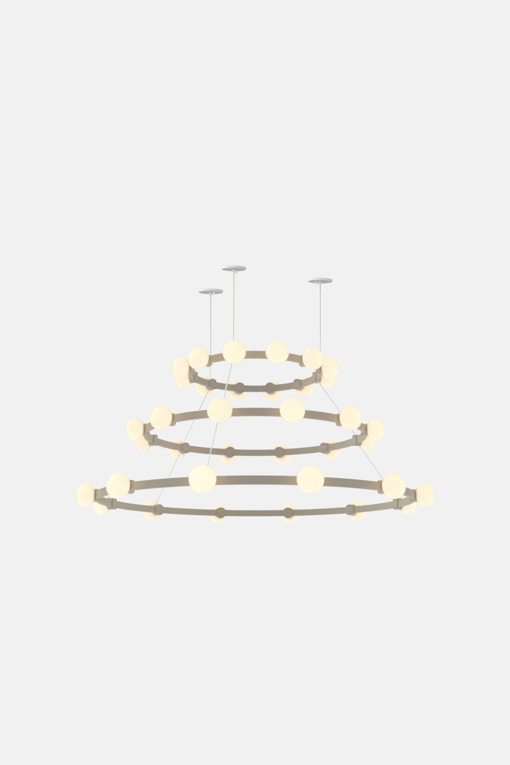The Cinema Chandelier makes a bold statement with minimal effort, featuring a simple circular frame in a rich metal or powder coated finish embellished by the warm glow of opal glass fixtures. Evocative of Old Hollywood’s charm, Cinema’s theatrical features are customizable to various compositions: The rings are available in stackable four-, six- or eight-foot diameters.