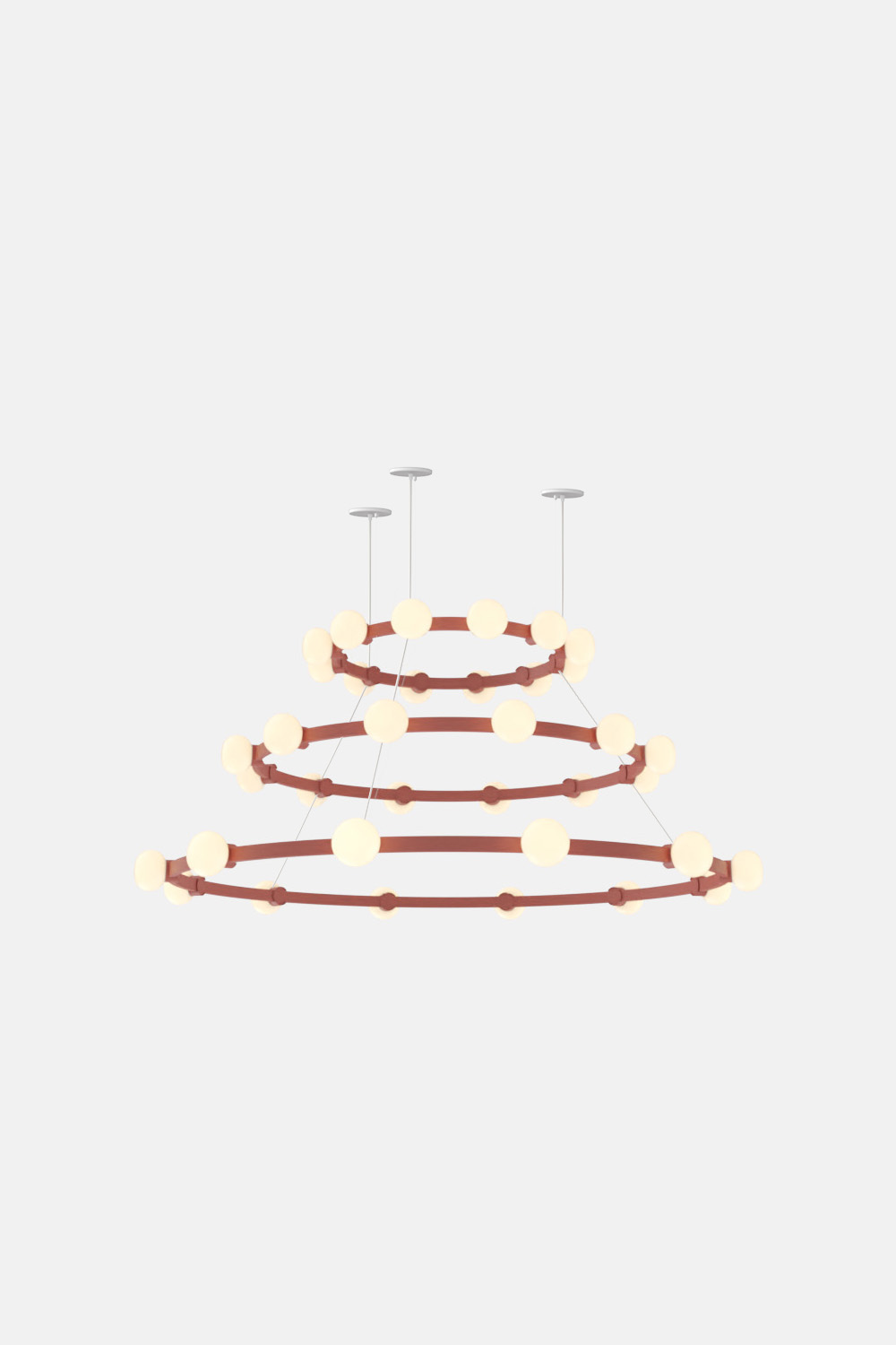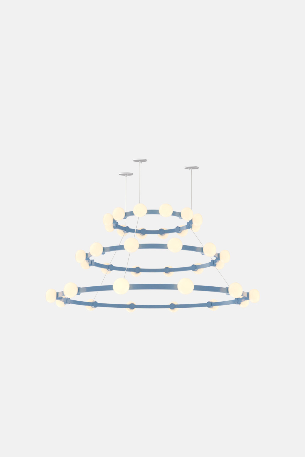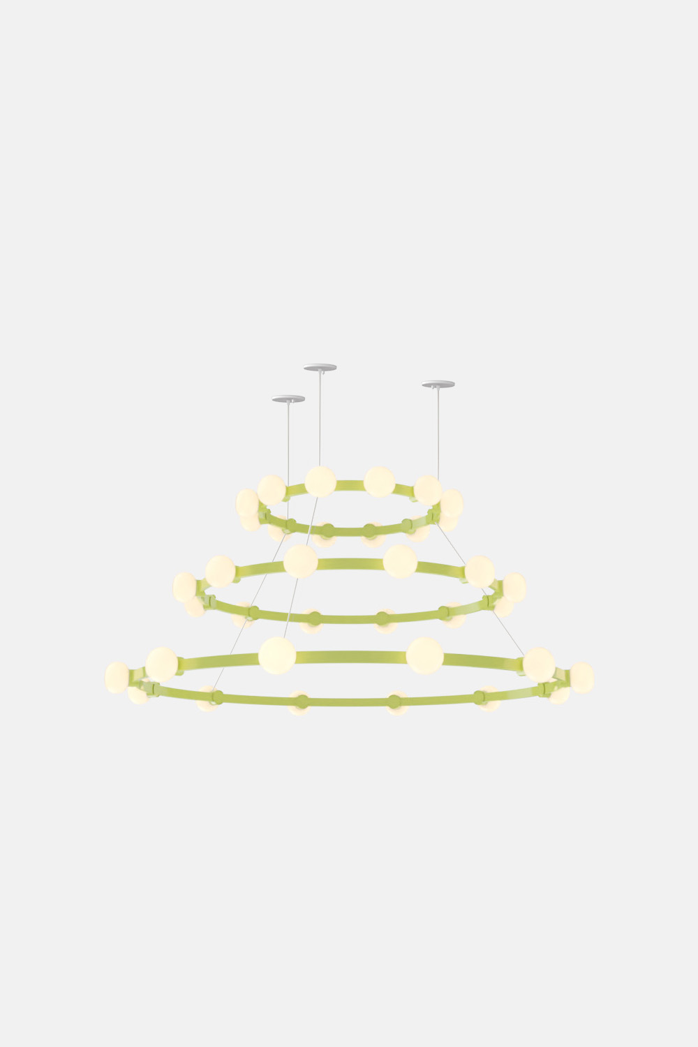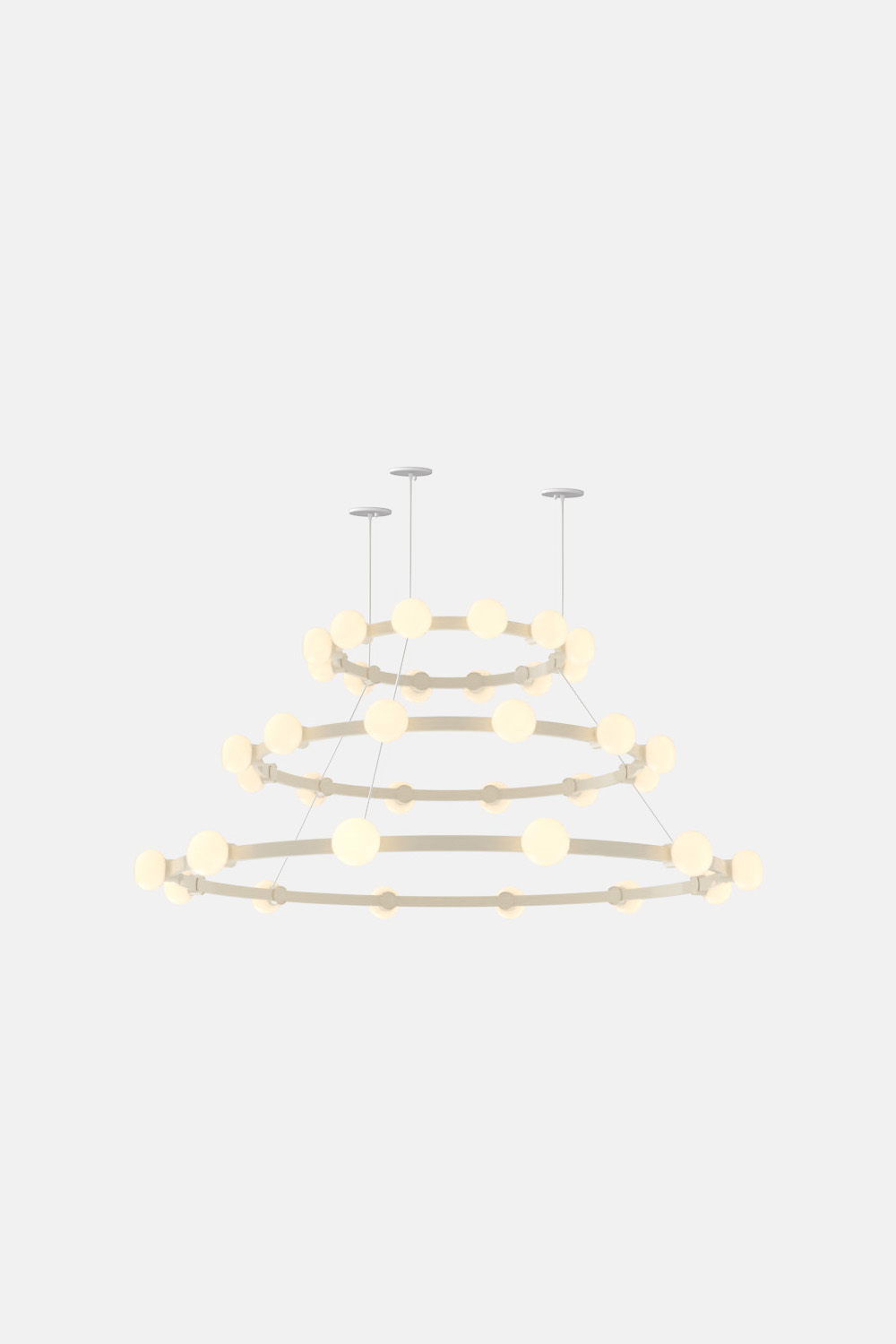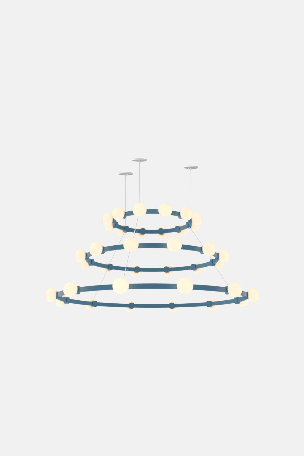 The Cinema Chandelier makes a bold statement with minimal effort, featuring a simple circular frame in a rich metal or powder coated finish embellished by the warm glow of opal glass fixtures. Evocative of Old Hollywood’s charm, Cinema’s theatrical features are customizable to various compositions: The rings are available in stackable four-, six- or eight-foot diameters.