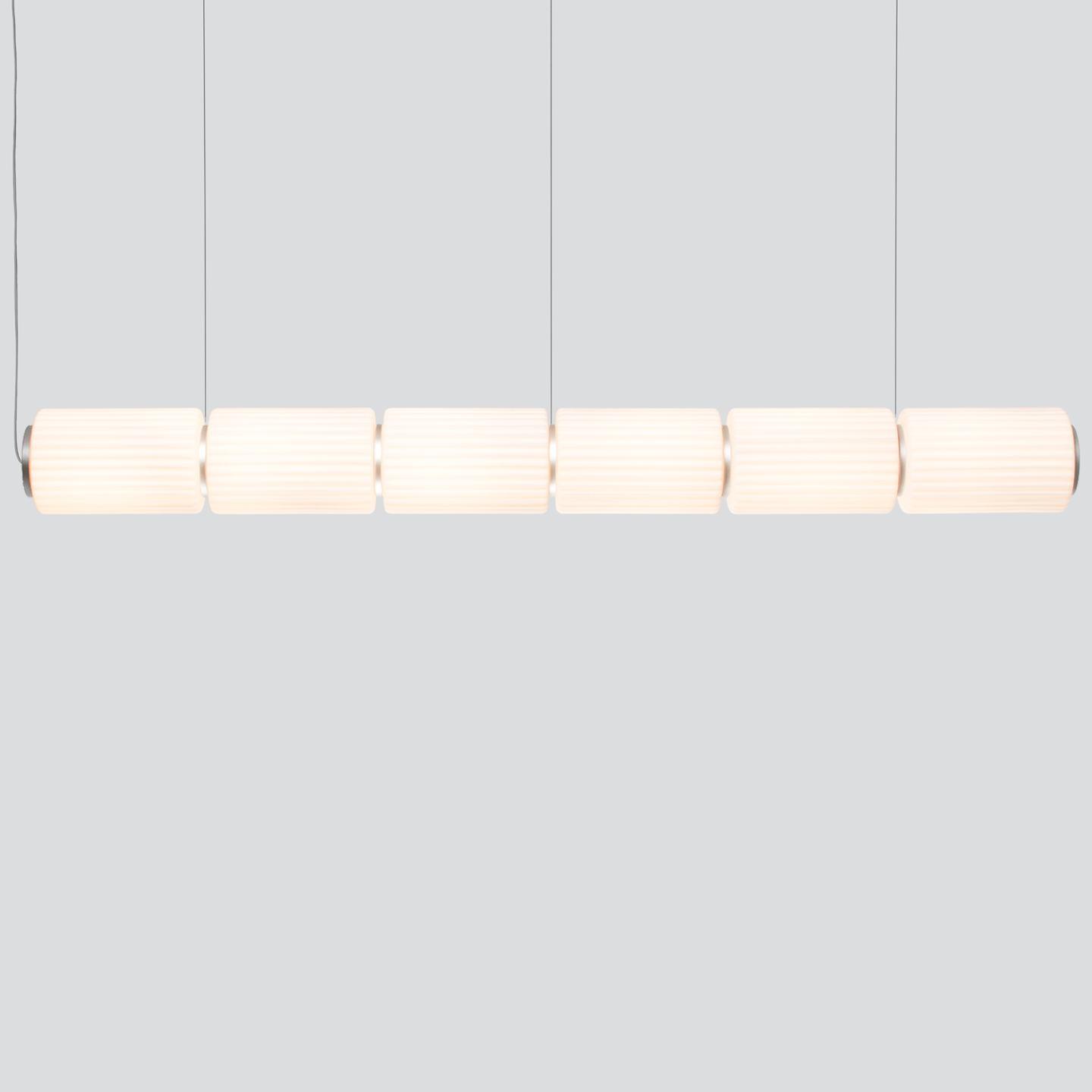 The Column conveys order, symmetry and magnificence, much like the Grecian doric columns found in classical architecture. The faceted surface of the column mimics the fluting used on buildings and temples to create a sense of rhythm, which softly diffuses the light as it radiates into the space. As it can be arranged in segments of machine mould-blown glass cylinders, it can lengthen a space vertically or expand it horizontally.