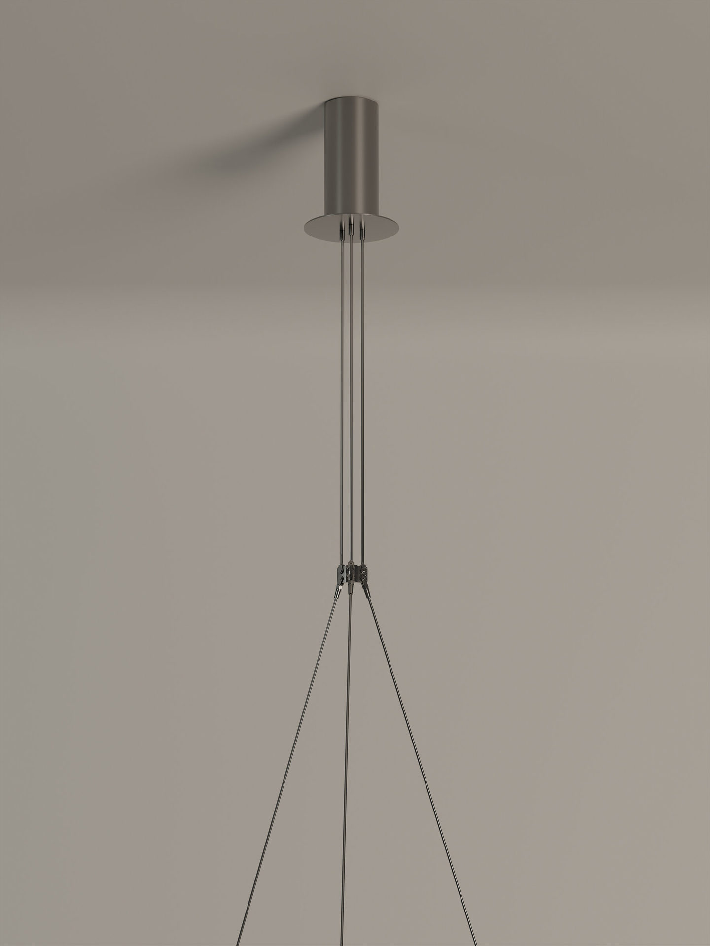 Texturized Black Metal Structure with Stainless Steel Structure Hanging System and Satin Nickel Celling Plate.