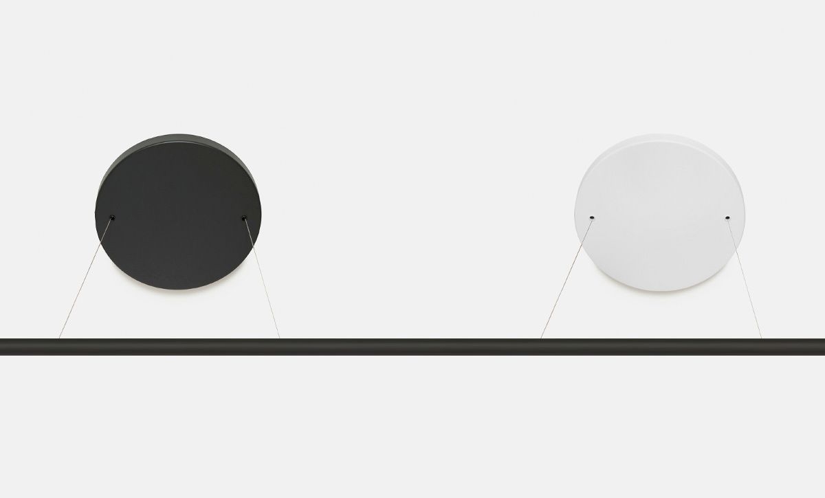Gala is a minimal, near-weightless take on the chandelier, rethought as a simple beam with power cords hidden inside the slim suspension cables. Its ivory-frosted glass fixtures, fixed in a variety of compositions, bring to mind hanging fruit. Voluptuous and handblown, each orb is subtly unique.