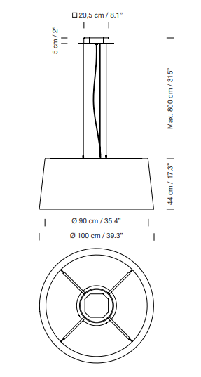 The GT1000 and GT1500 are voluminous pendant lamps with ribbon shades, especially designed for projects with expansive spaces. Both lamps feature a large translucent disc that hides the powerful dimmable LED plate and pleasantly diffuses the light. This is a colourful family that varies in size without altering its essence, creating rich luminous tones. With the light on, the shade provides a warm light, rich in nuances. With the light off, this lamp is a sculptural statement piece that enhances the room.