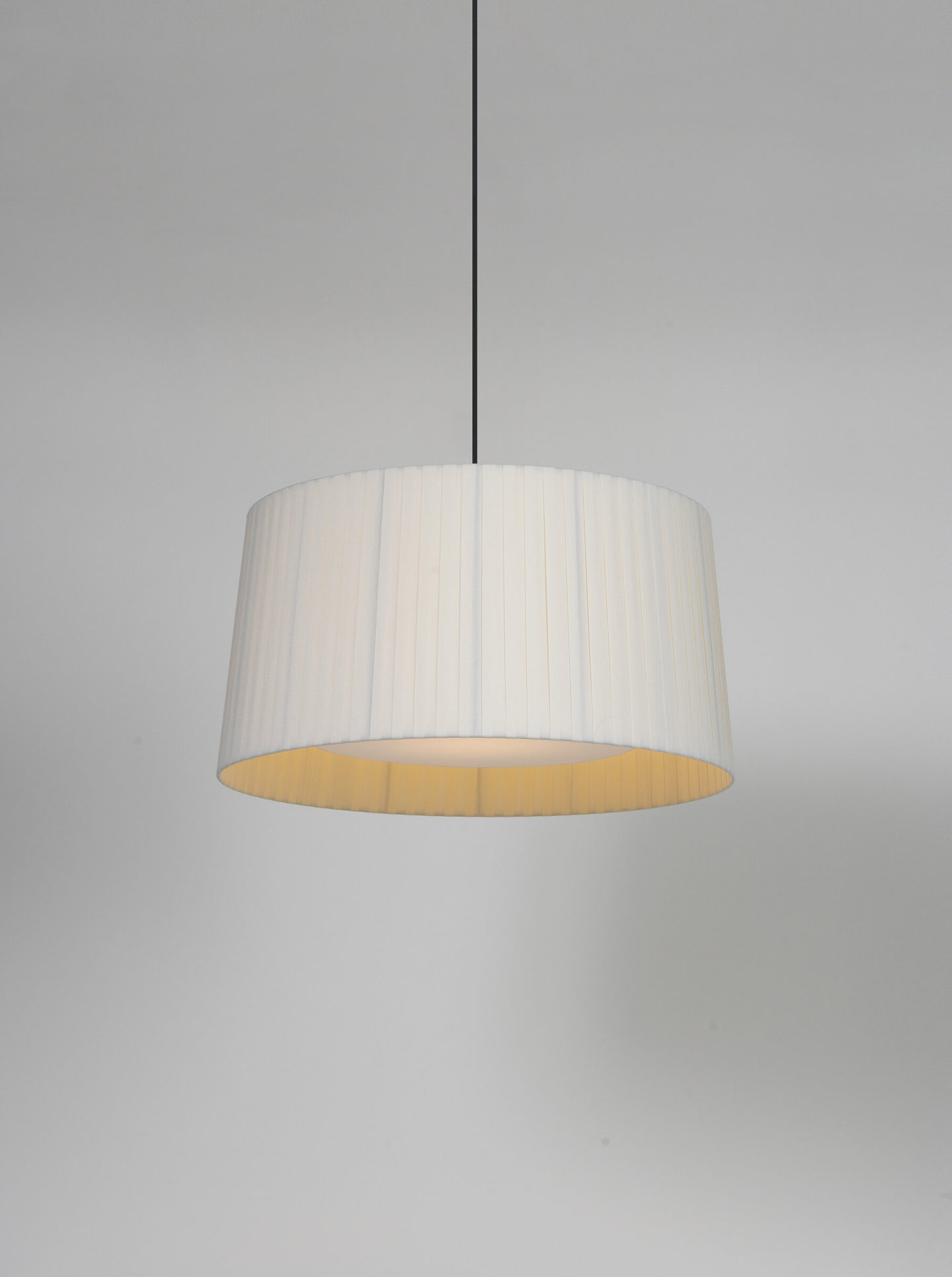 Designed for intermediate volumes and household areas, GT5 and GT6 are hanging lamps with ribboned shades whose mere presence imbues a room with character. Santa & Cole advocates the use of ribboned shades to dress up every kind of light source, exploring different materials and playing with colours and hues.