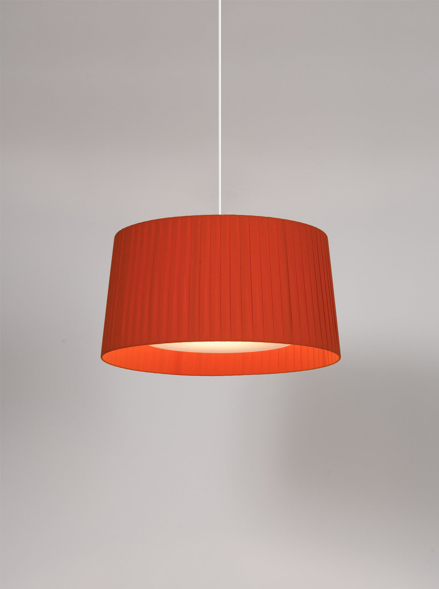 Designed for intermediate volumes and household areas, GT5 and GT6 are hanging lamps with ribboned shades whose mere presence imbues a room with character. Santa & Cole advocates the use of ribboned shades to dress up every kind of light source, exploring different materials and playing with colours and hues.