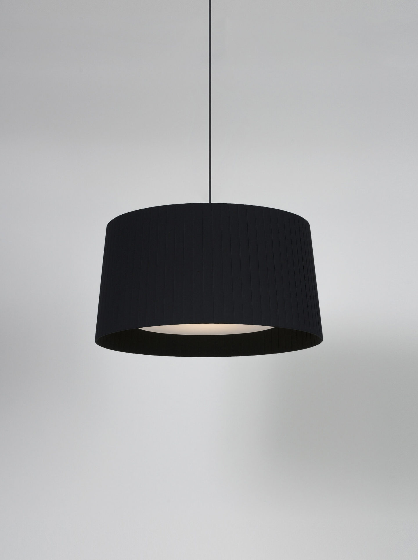 Designed for intermediate volumes and household areas, GT5 and GT6 are hanging lamps with ribboned shades whose mere presence imbues a room with character. Santa & Cole advocates the use of ribboned shades to dress up every kind of light source, exploring different materials and playing with colours and hues.