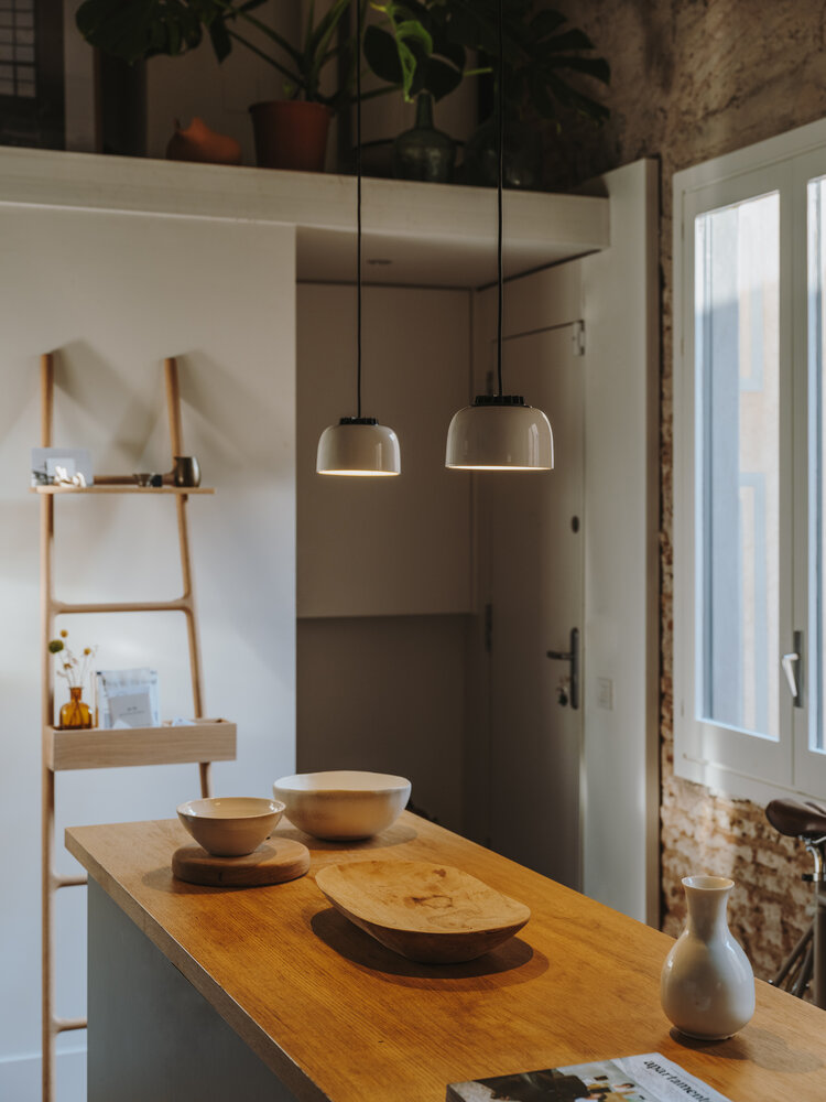 The HeadHat Bowl series is another great example of industrial craftsmanship. Their ceramic shades are molded manually one by one into their perfect shape; the HeadHat Bowl features an opaque density, with simple concave shapes and LED technology that provides beautiful direct light; ideal for lighting tables, reference rooms or other specific areas. Perfect for creating a warm interior.