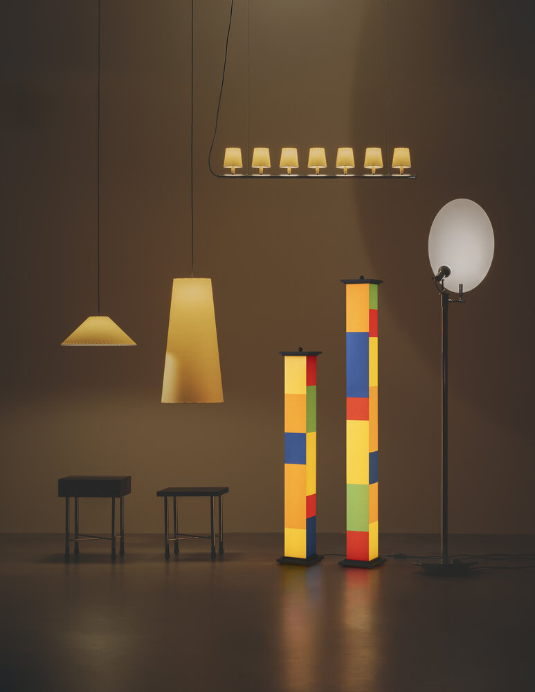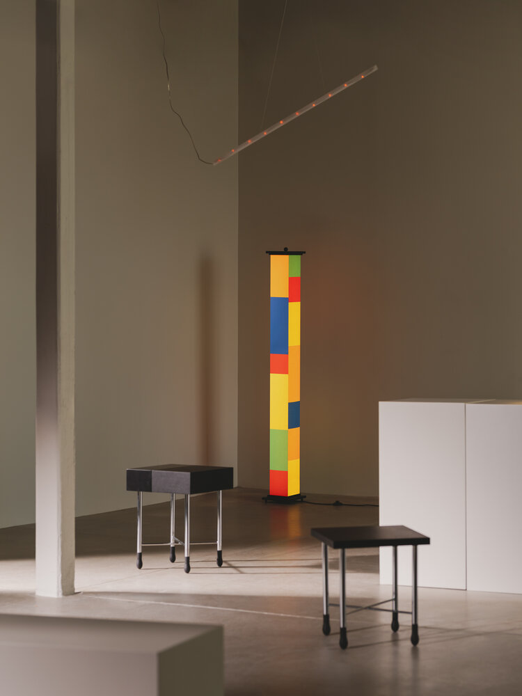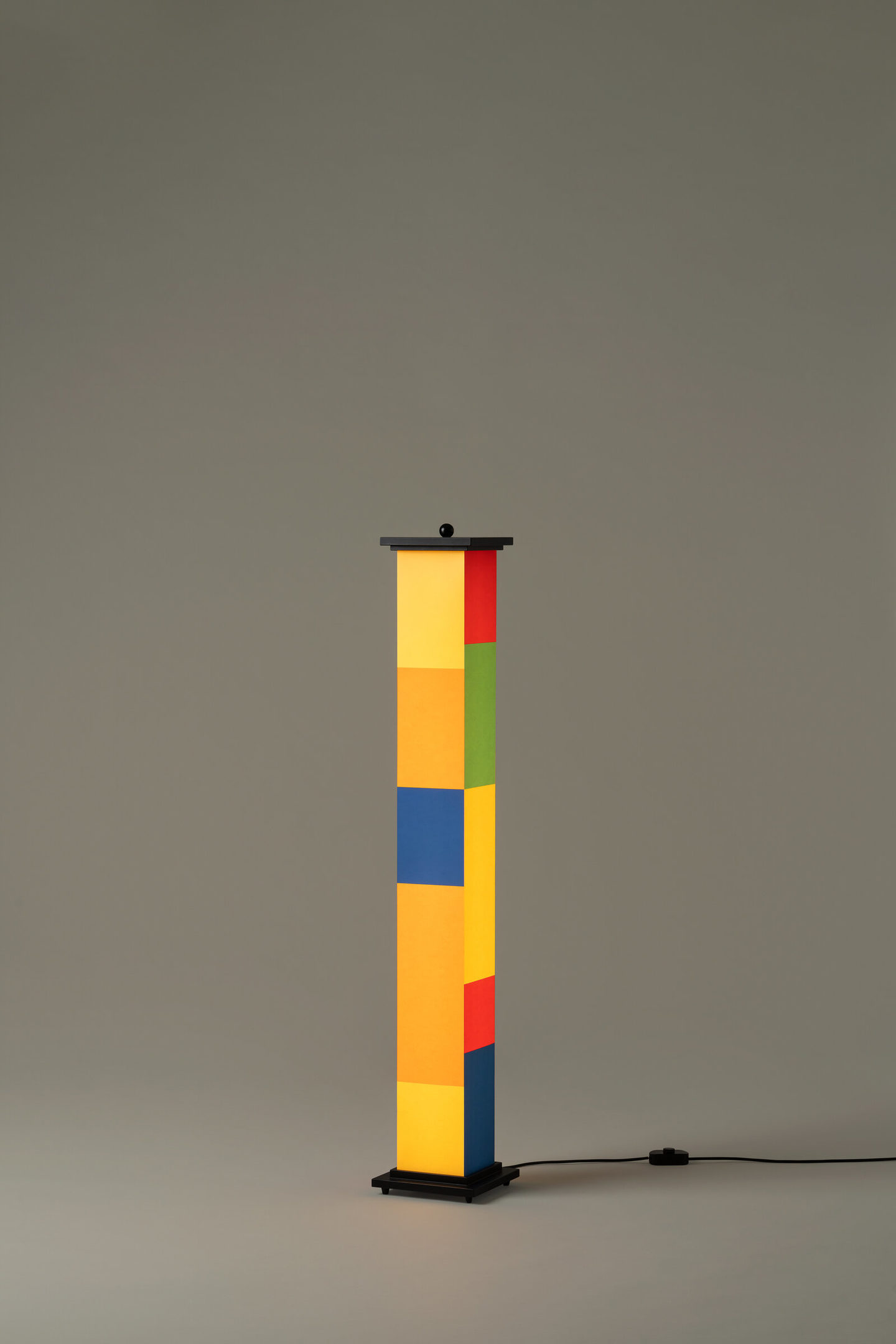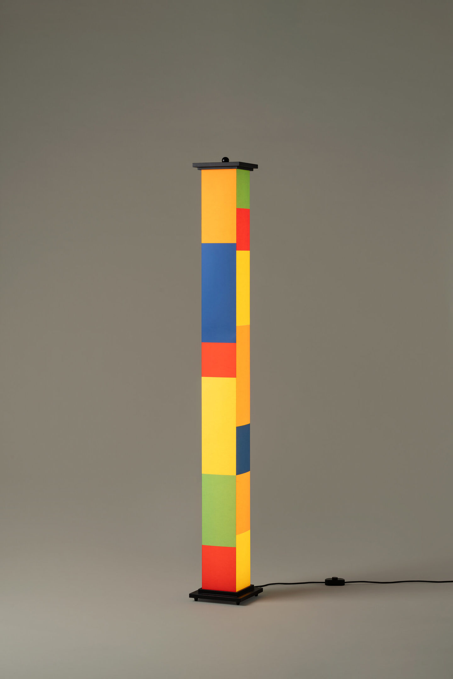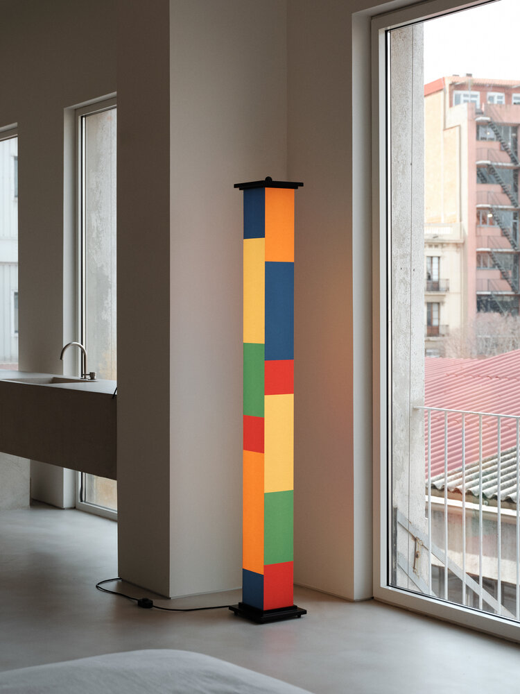 Designed by Santa & Cole co-founders Gabriel Ordeig Cole and Nina Masó, La Bella Durmiente (Sleeping Beauty) is a totemic volume that explores the expressive potential of color, playing with contrasts between warm and cold hues. The result is a visually dynamic and balanced composition. A composition that nods to the geometric abstraction of Piet Mondrian or Theo van Doesburg. Born in 1985 as a defiant response to an era dominated by cold halogen lights and stark metal structures, this lamp championed colorful fluorescence (now LED) when this light source was considered blue and soulless.