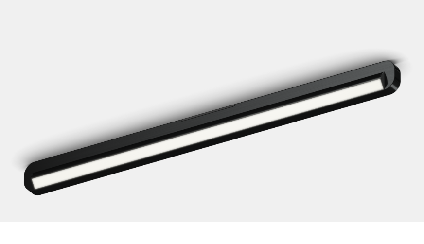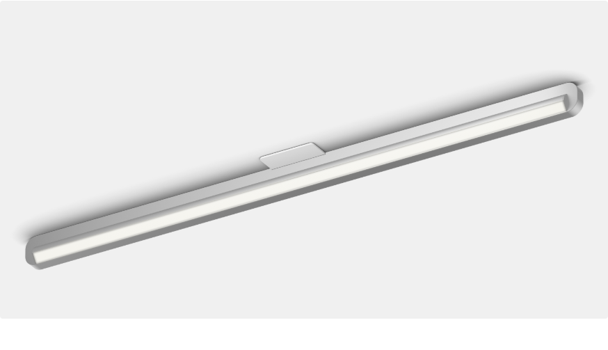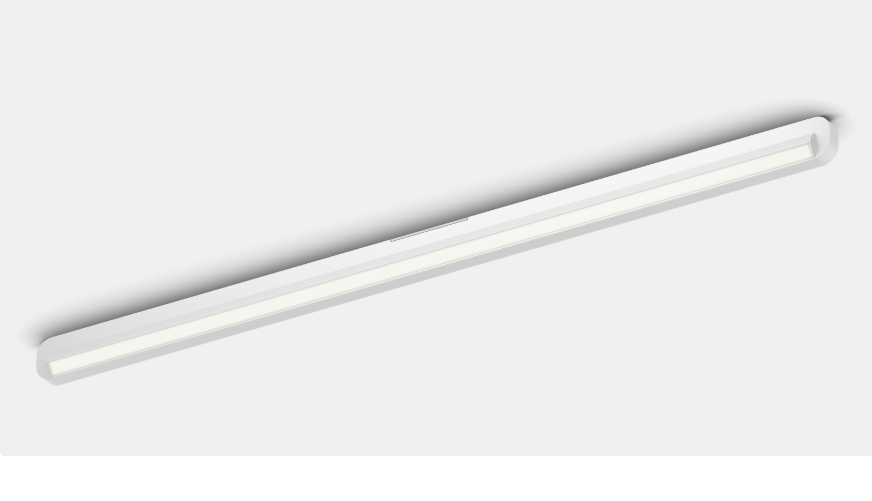 Puristic design element: the Mito alto side ceiling luminaire, used as a wall washer, produces homogeneous, architectural lighting and expands the lighting design options of the Occhio product portfolio. Mito alto side is also a perfect surface-mounted luminaire with its integrated converter.