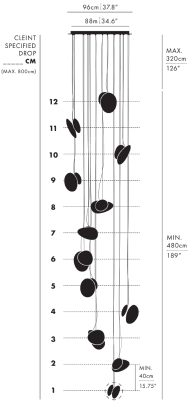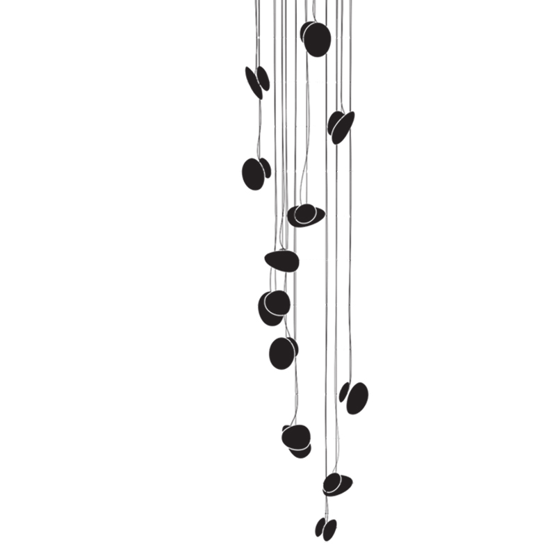 Exquisite compositions of Pebble Pendants create radiant chandeliers emphasizing range and grandeur as they inhabit a space. The configuration of pendants from a multipoint canopy accentuates the Pebble’s organic silhouette and soft contours as they appear to pulsate in unison, radiating a mesmeric aura.