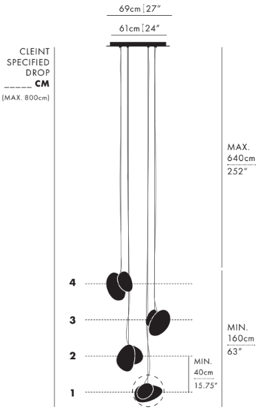 Exquisite compositions of Pebble Pendants create radiant chandeliers emphasizing range and grandeur as they inhabit a space. The configuration of pendants from a multipoint canopy accentuates the Pebble’s organic silhouette and soft contours as they appear to pulsate in unison, radiating a mesmeric aura.