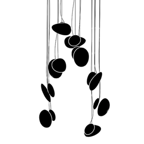 Exquisite compositions of Pebble Pendants create radiant chandeliers emphasizing range and grandeur as they inhabit a space. The configuration of pendants from a multipoint canopy accentuates the Pebble’s organic silhouette and soft contours as they appear to pulsate in unison, radiating a mesmeric aura.