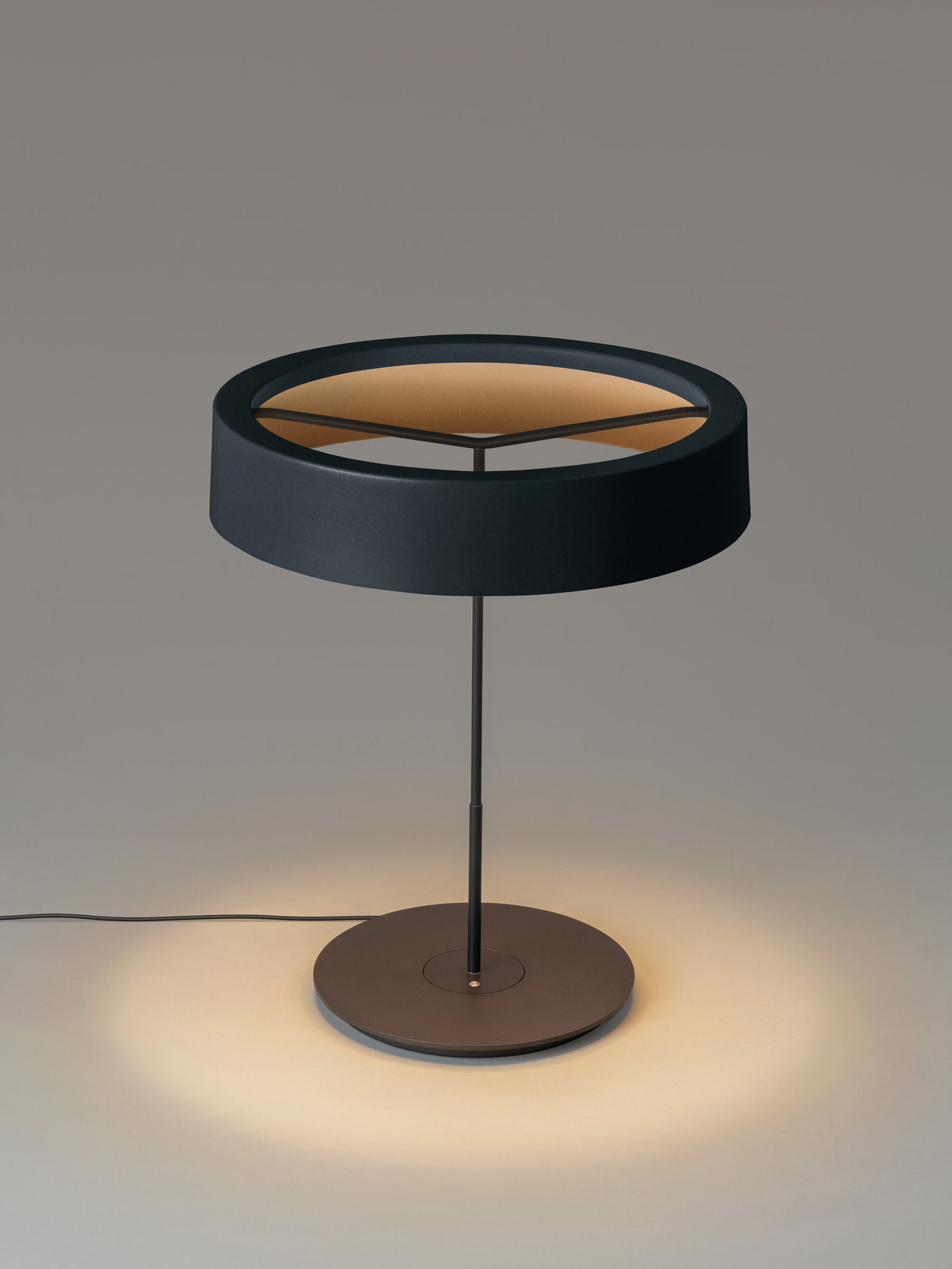 A lamp that combines simplicity and technology to create a lucent ring of light suspended in the air. It comes in two sizes, both available in matte white or graphite, to which a shade can be affixed. Or they can be left without a shade, unapologetic. Sin broadly illuminates any work surface with direct, warm light, and does not take up space on a desk because all kinds of errant items can be kept on its base, including papers.