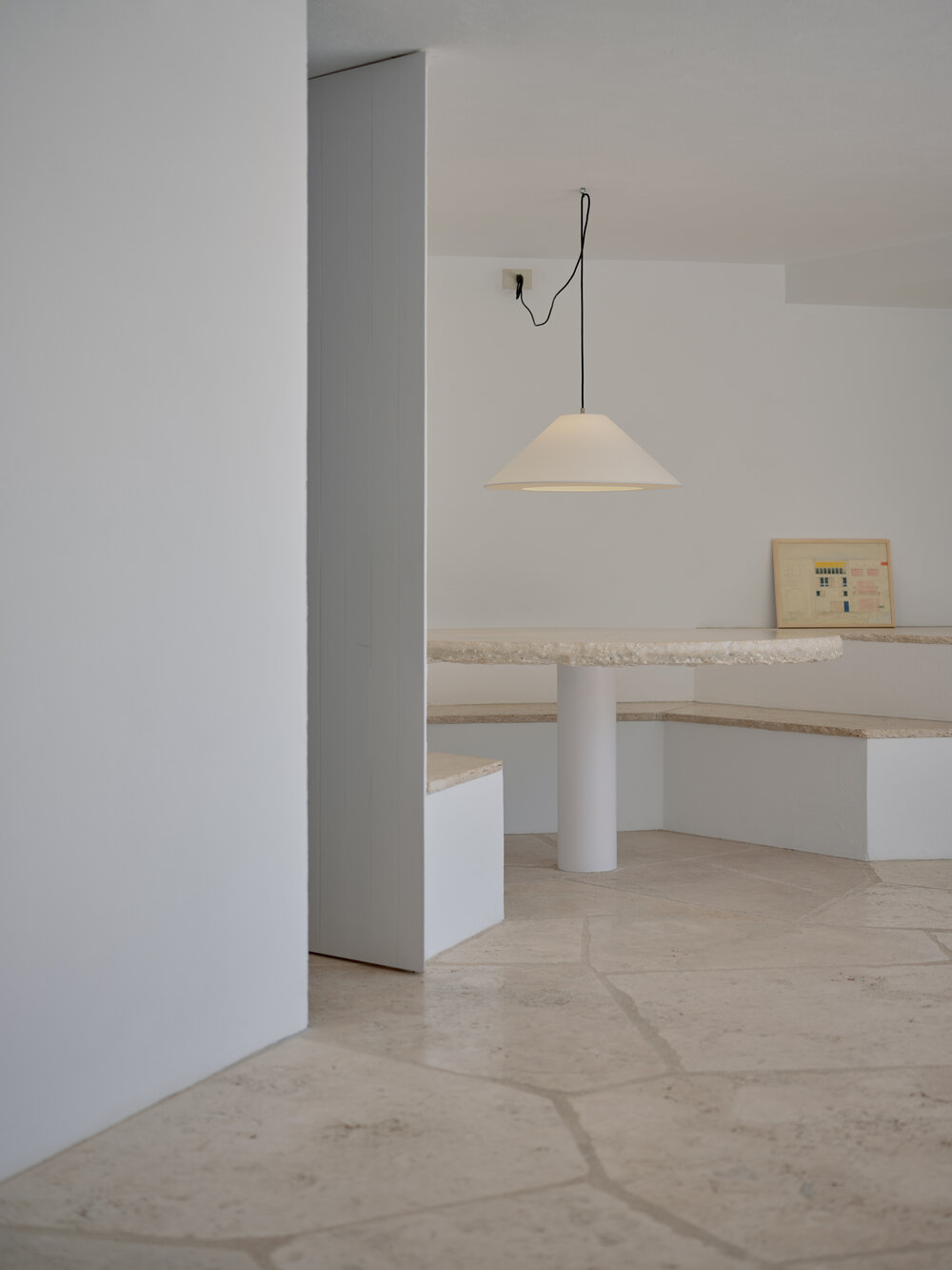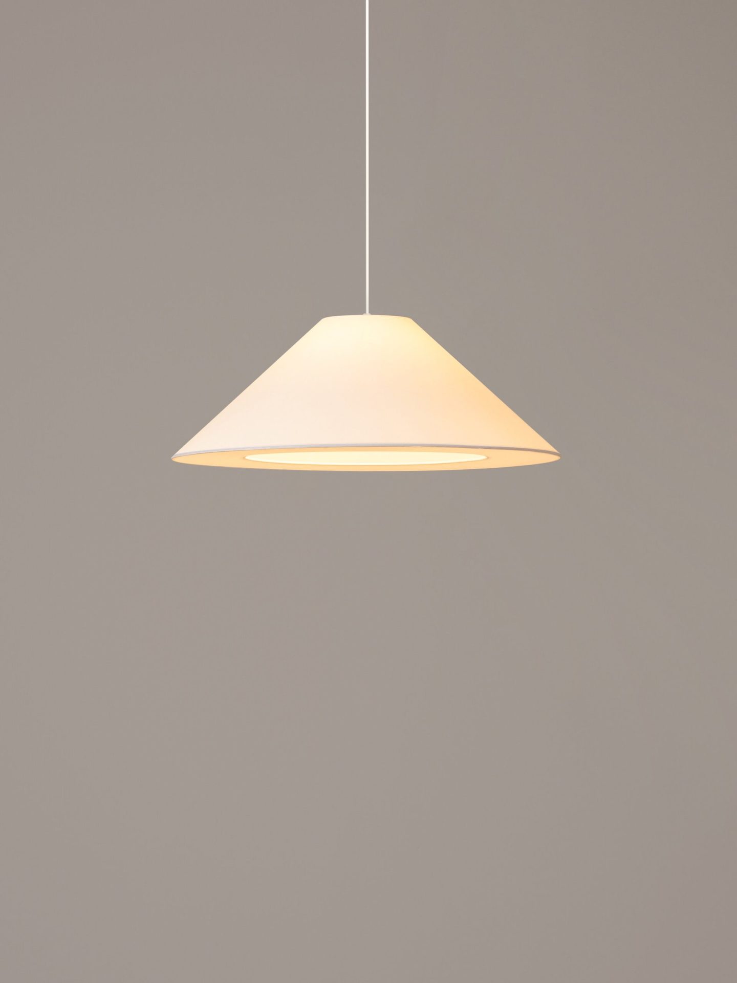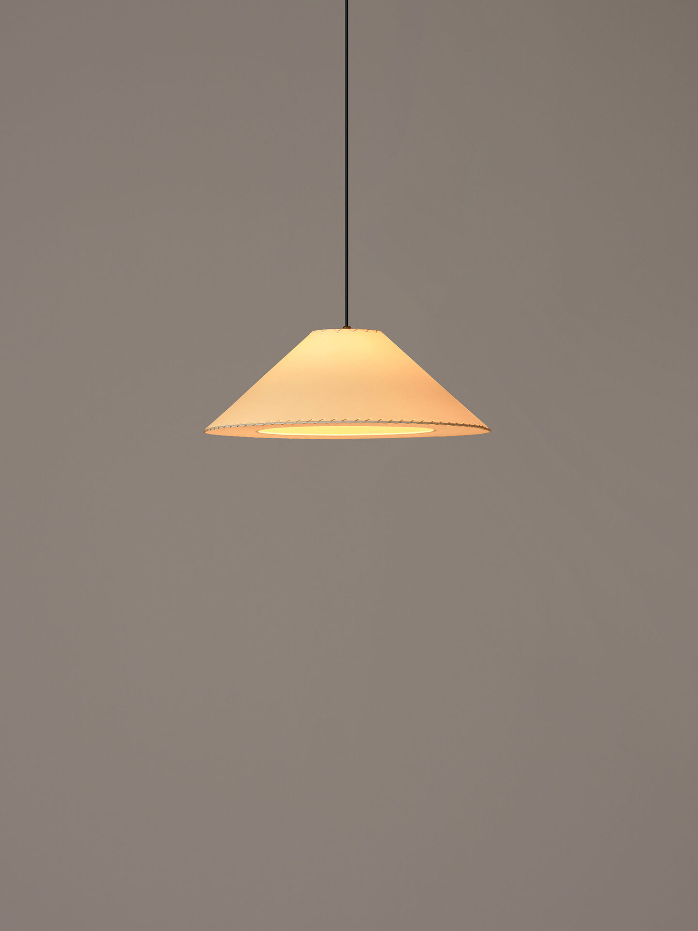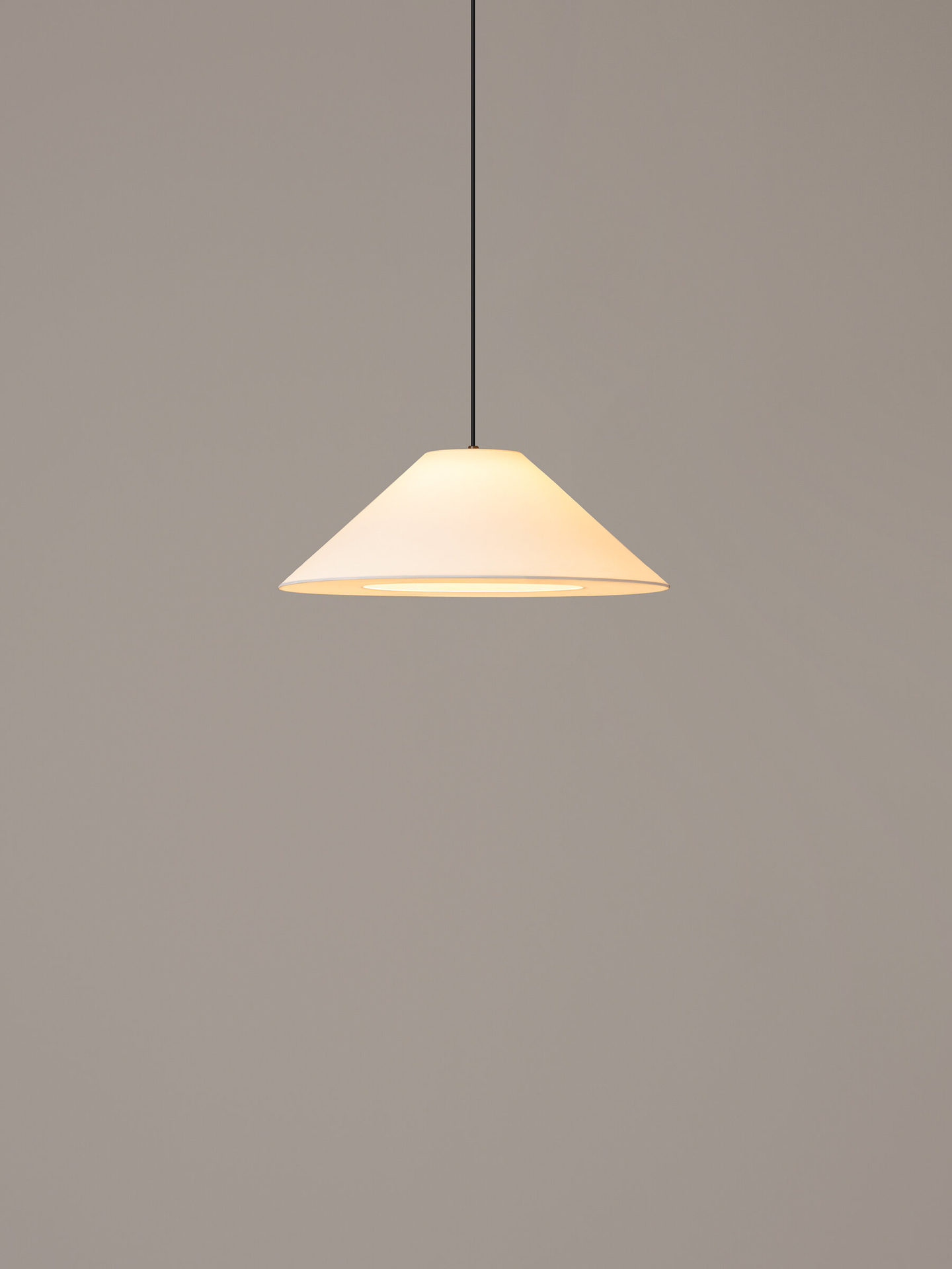 The flat conical shape of the MT4 and MT5 lampshades have a familiar, archetypal silhouette. Its volume may be robust but it is light in its adaptability to the space.