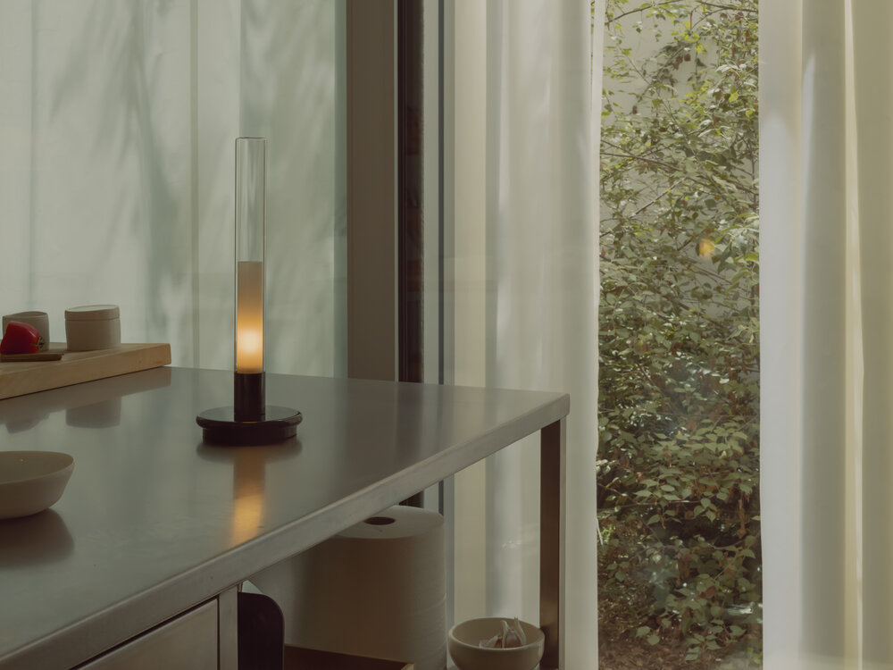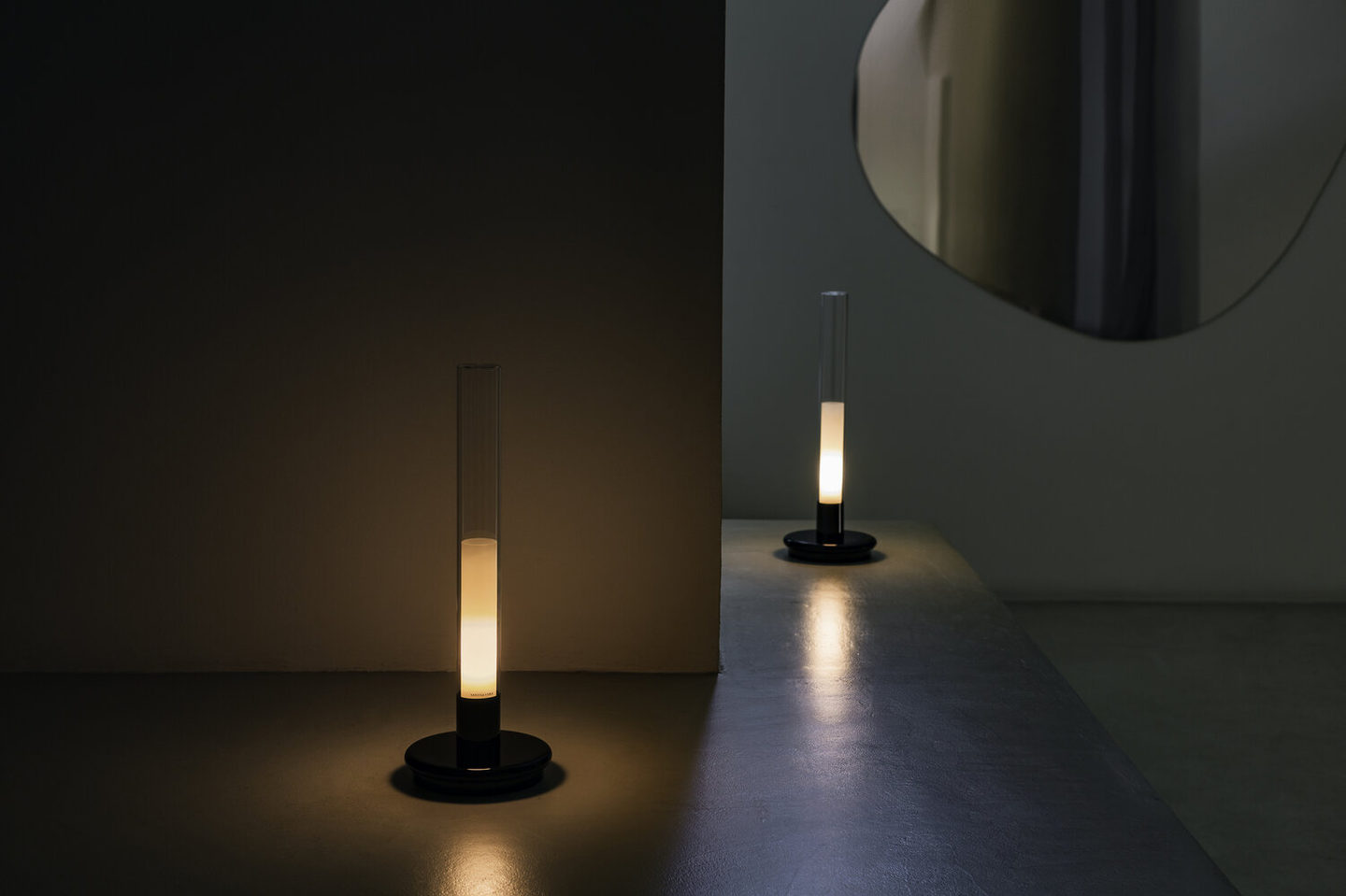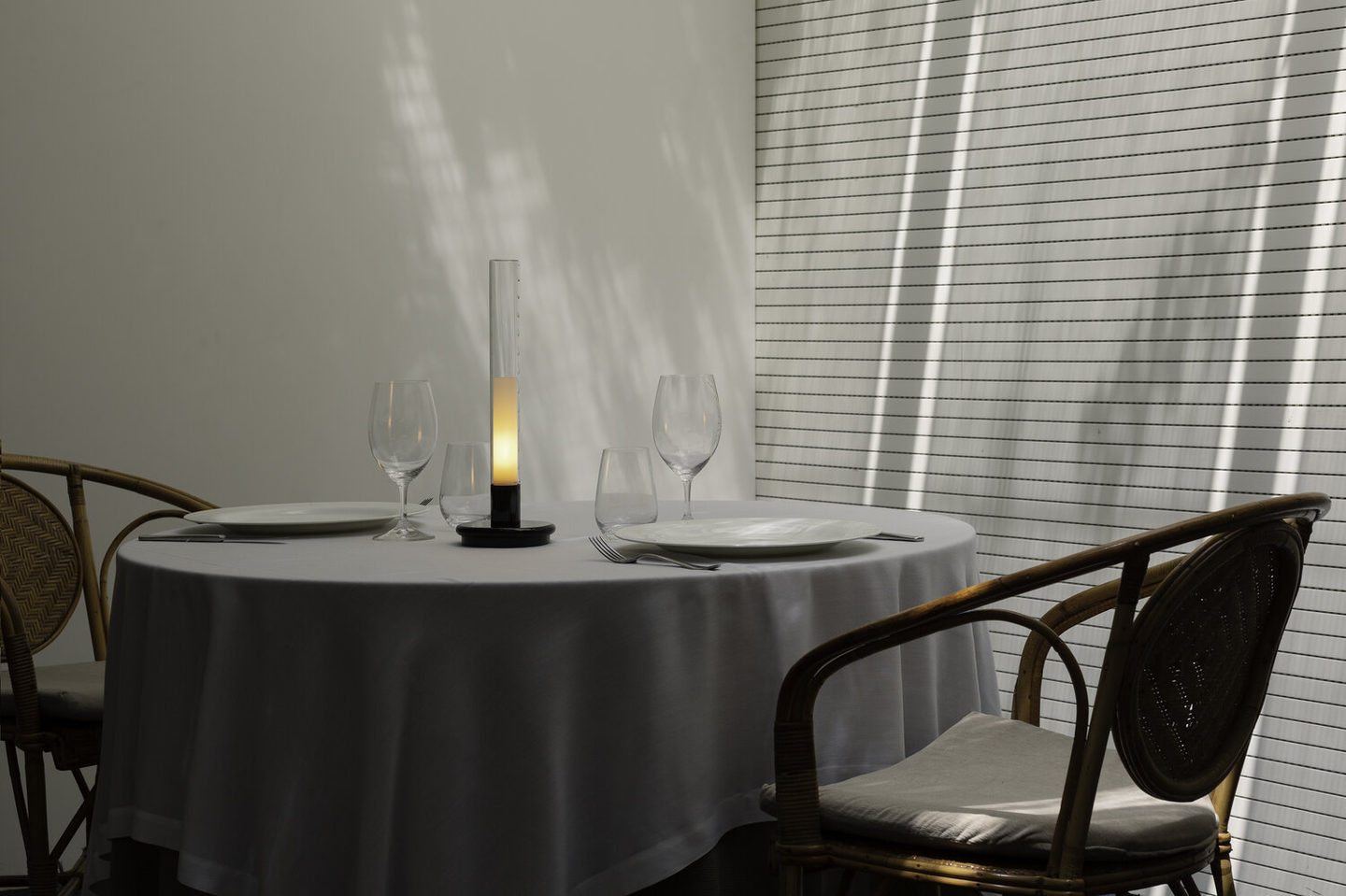 Freed of all oils, kerosene or cables, Sylvestrina is at hand, ready for any occasion. Named after a fisherman from the Costa Brava –Silvestre, a tall, lean, and elegant character-, it leaves barely a trace on the table, much like a wine bottle. A simple press on its base turns it on, adjusting the intensity between full, medium, or off.