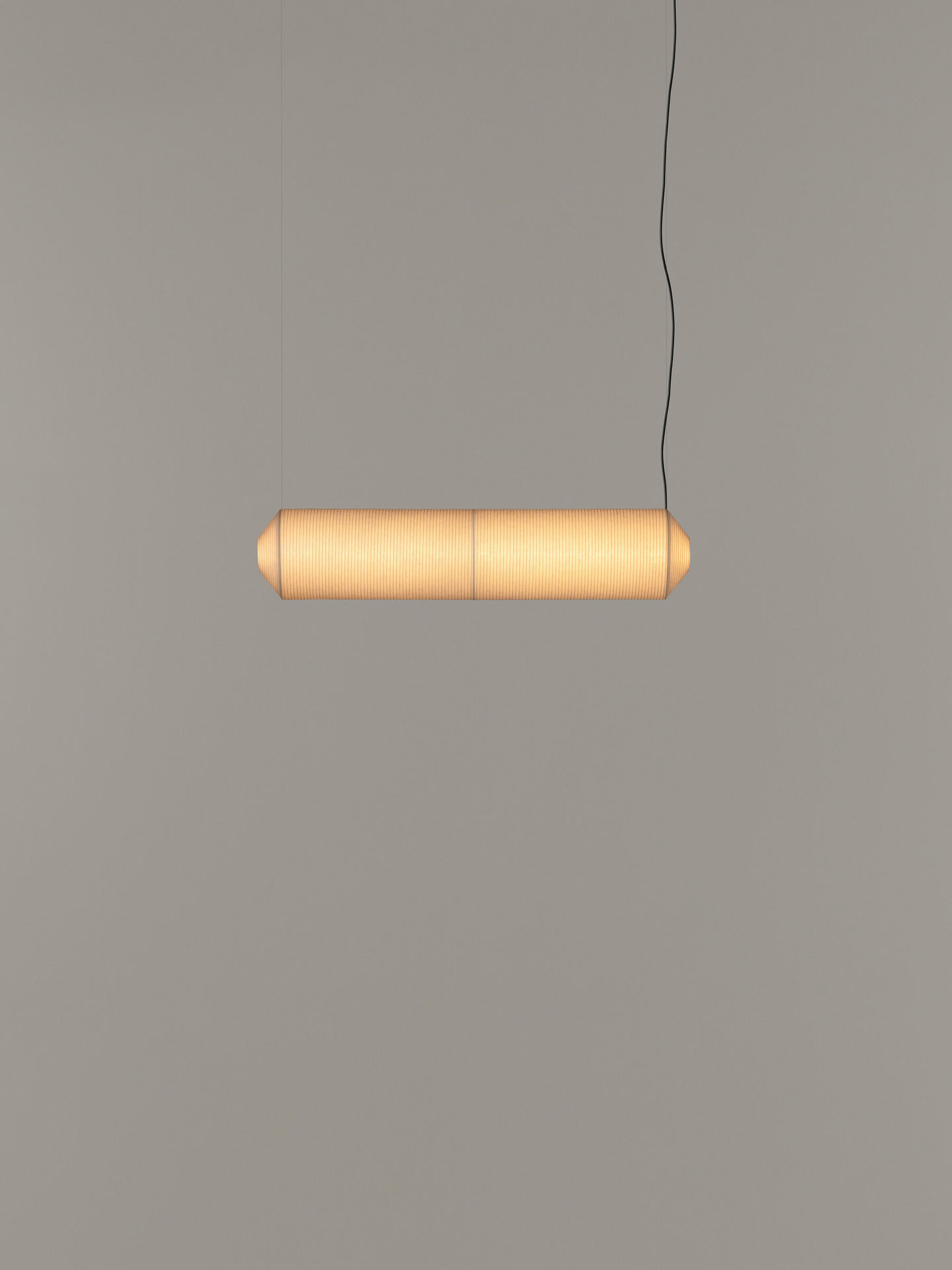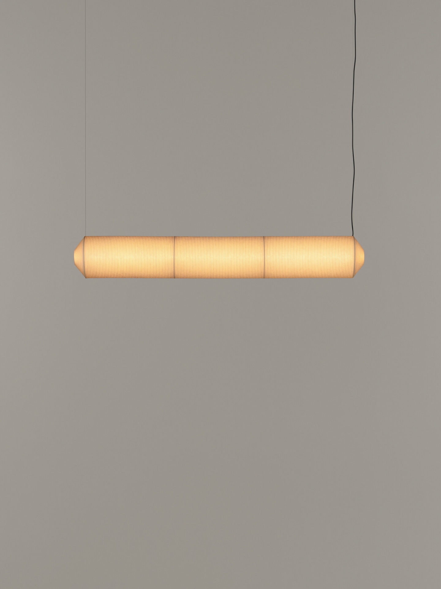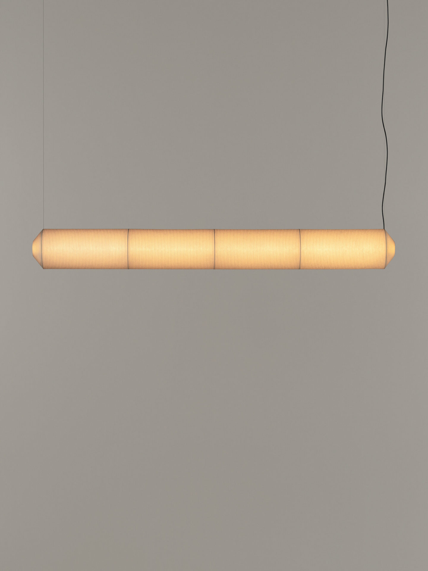 Tekiò Horizontal is an elegant solution for dressing up a flat surface, such as a table, or for drawing pathways and large open spaces. Its adaptable light source makes it possible to generate the right ambience for every situation. Configurable from one to four modules, it becomes an ally for all uses. Tekiò, the Japanese word for adaptation, merges ancient artisan techniques with Warm to Dim LED technology that enables control of intensity and colour temperature. Tekiò’s highly technical lighting structures are carefully dressed in handmade paper. Depending on the chosen combination, different linear or circular shapes of various sizes can be achieved.