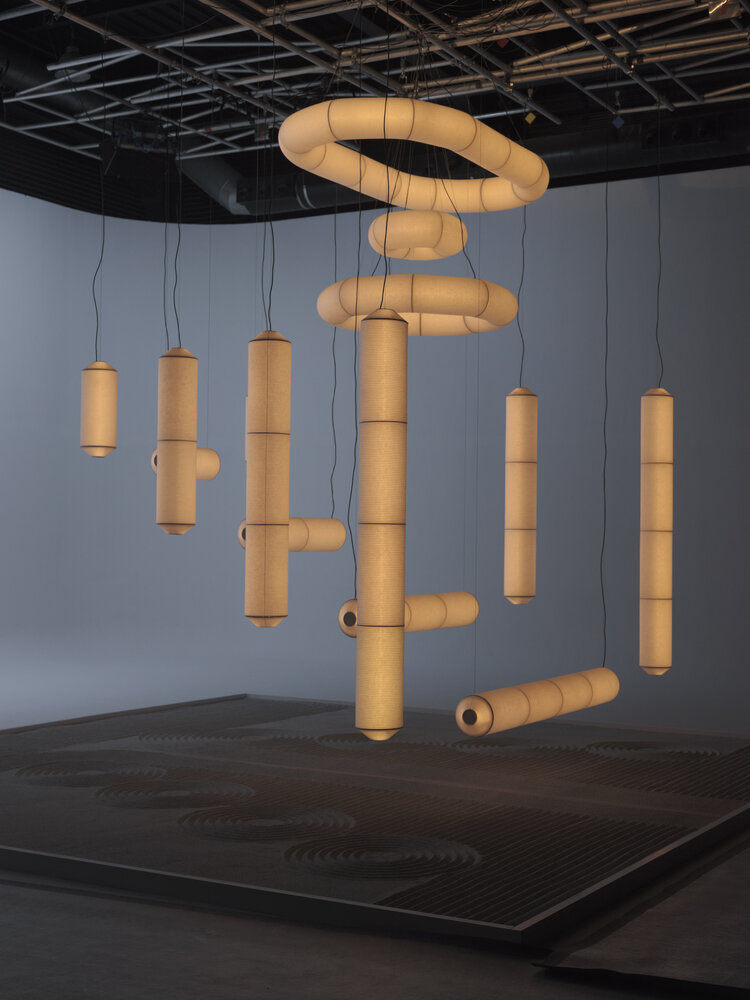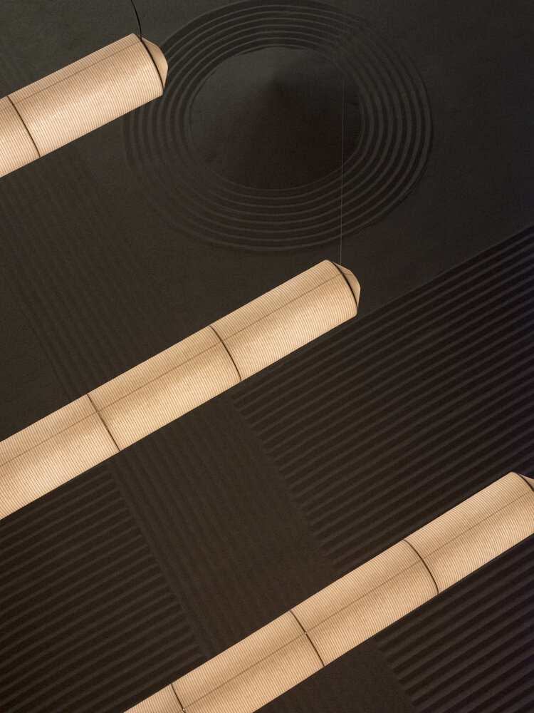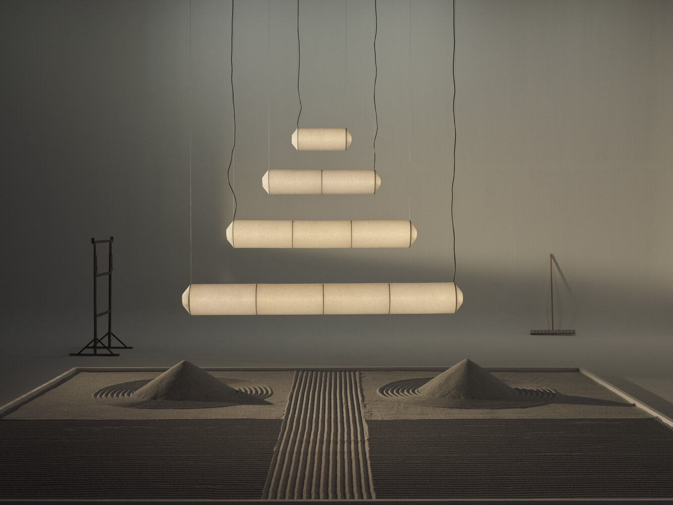 Tekiò Horizontal is an elegant solution for dressing up a flat surface, such as a table, or for drawing pathways and large open spaces. Its adaptable light source makes it possible to generate the right ambience for every situation. Configurable from one to four modules, it becomes an ally for all uses. Tekiò, the Japanese word for adaptation, merges ancient artisan techniques with Warm to Dim LED technology that enables control of intensity and colour temperature. Tekiò’s highly technical lighting structures are carefully dressed in handmade paper. Depending on the chosen combination, different linear or circular shapes of various sizes can be achieved.