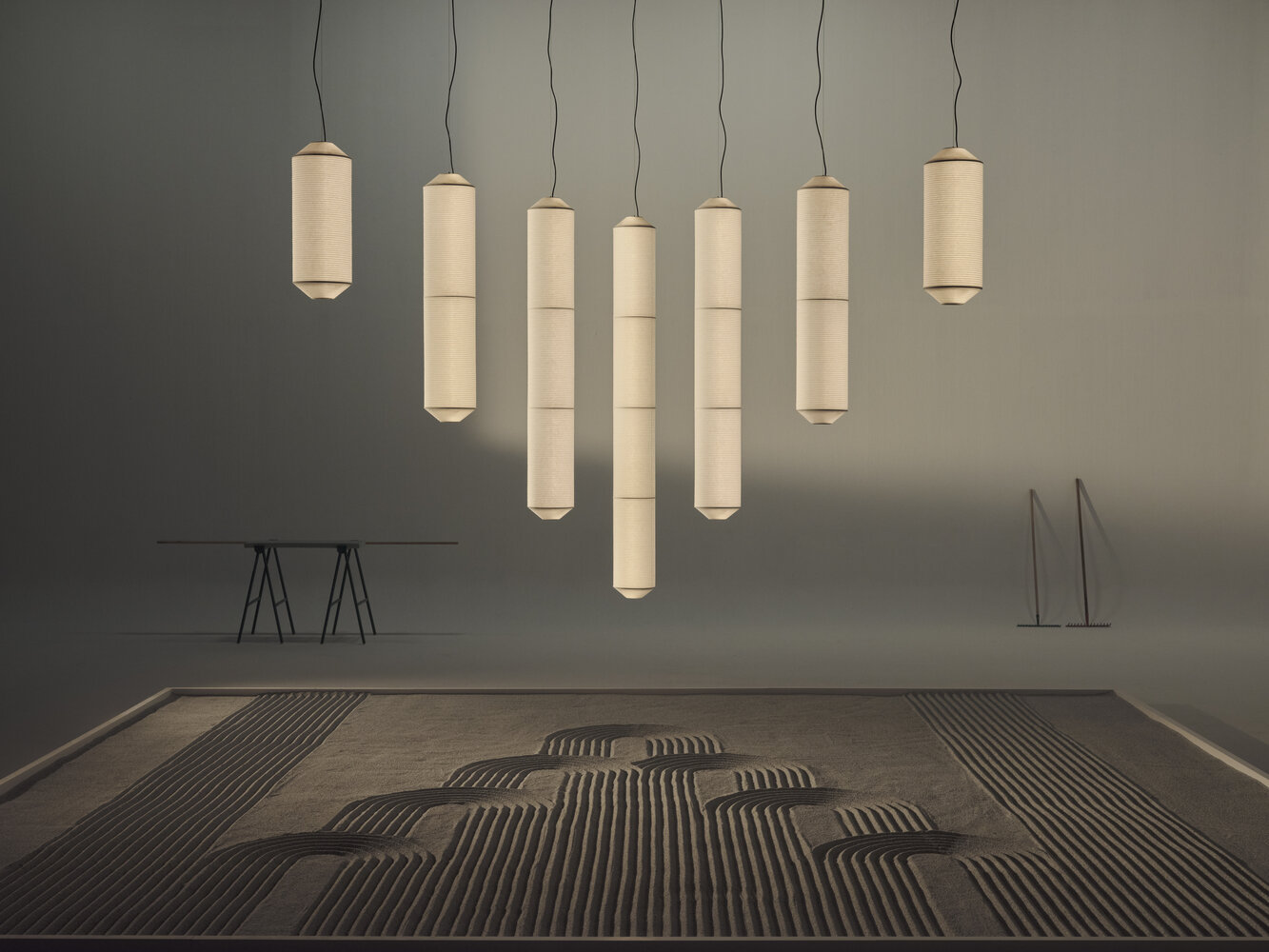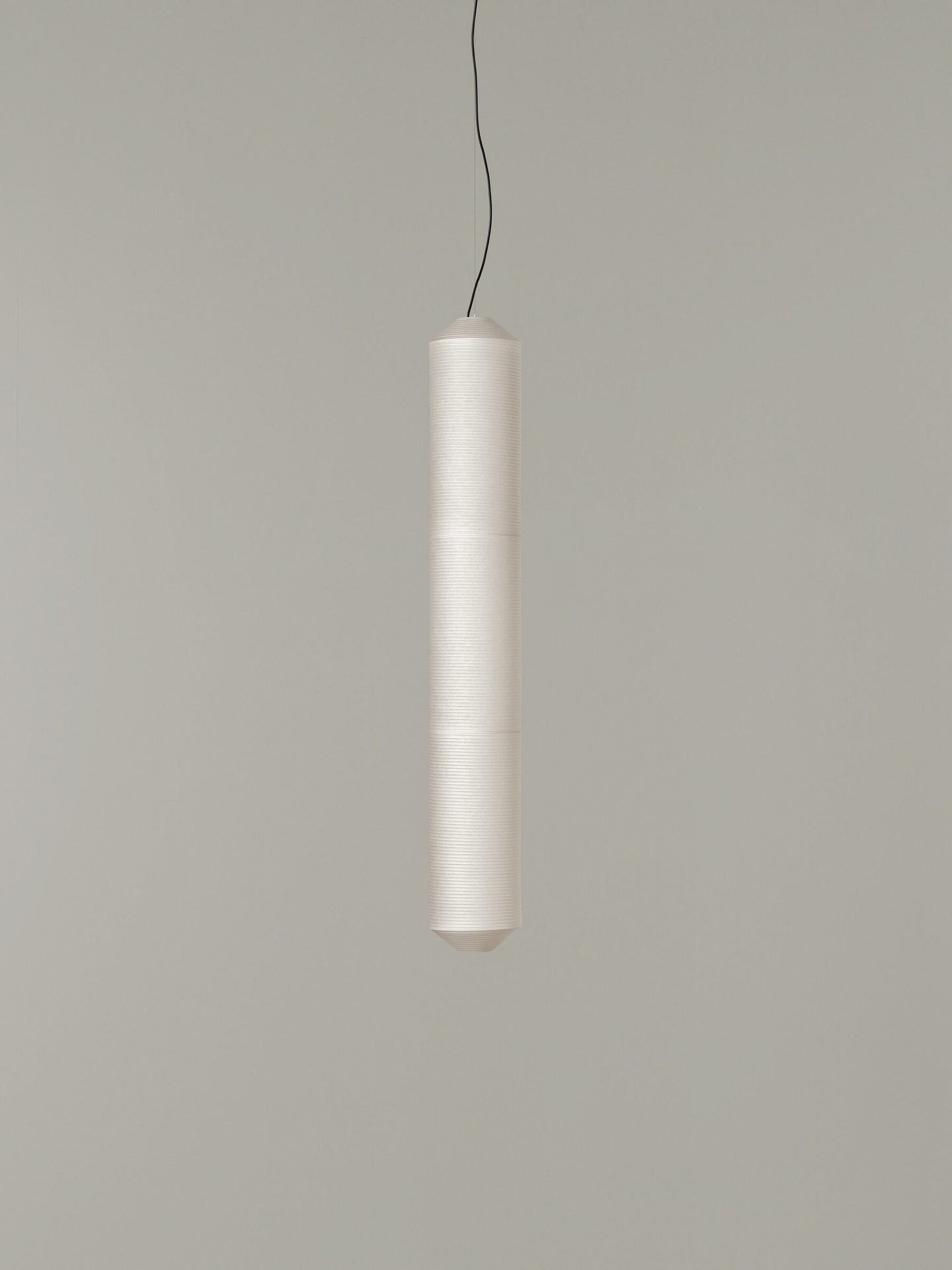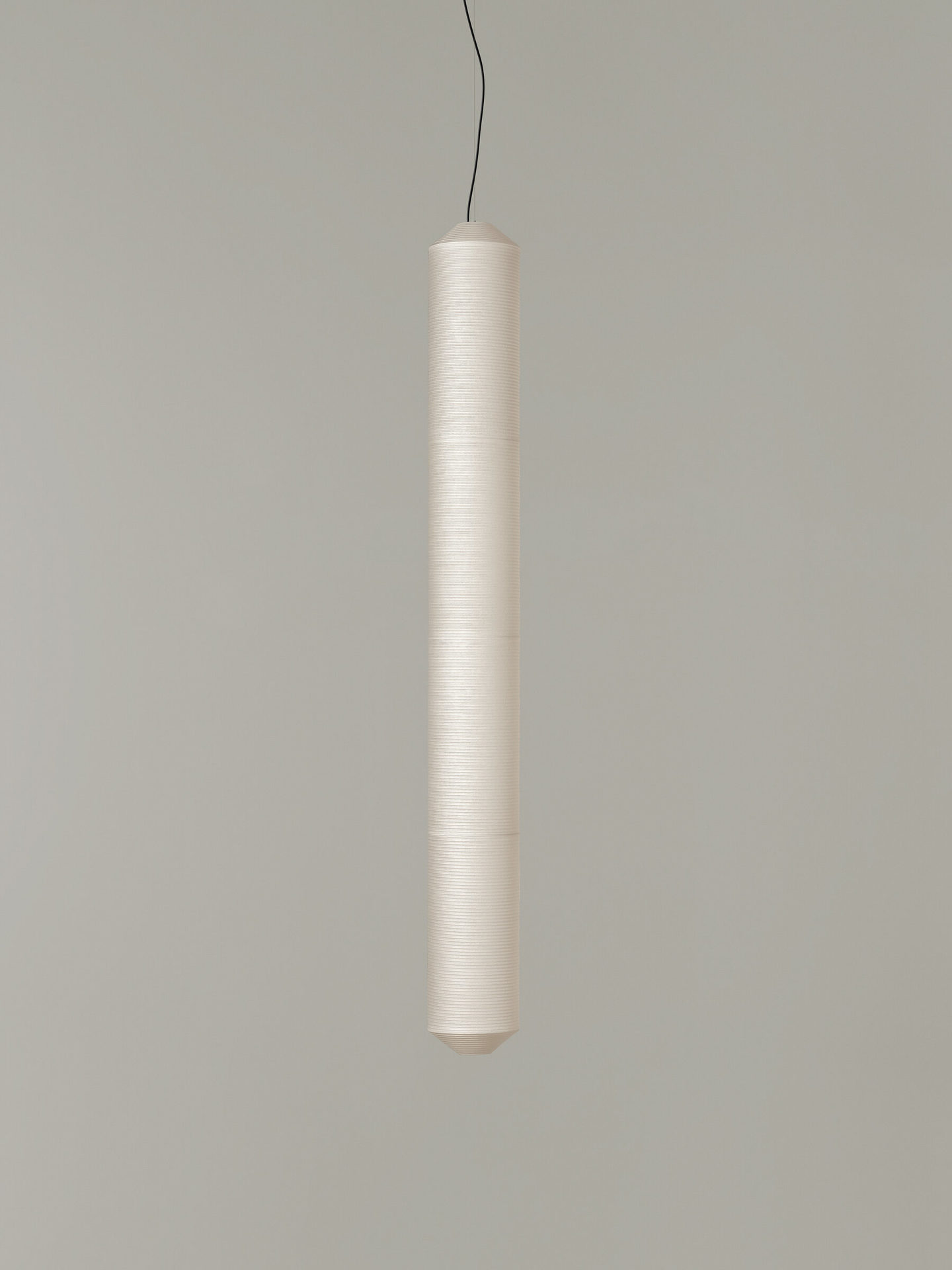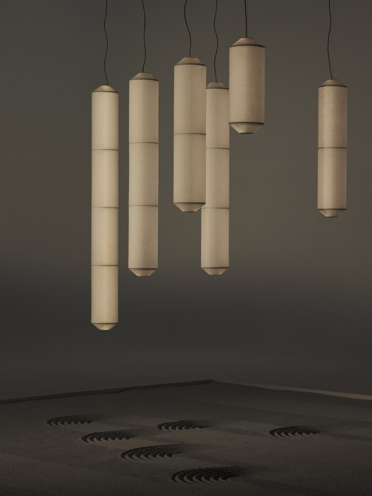 In its multiple sizes, Tekiò Vertical illuminates every space with intimacy. It gathers, inspires and enlightens. It sculpturally resolves spaces of varying heights by bathing them in uniform light. On its own or in repetition, its luminous intensity can range from a whisper to an exclamation. Tekiò, the Japanese word for adaptation, merges ancient artisan techniques with Warm to Dim LED technology that enables control of intensity and colour temperature. Tekiò’s highly technical lighting structures are carefully dressed in handmade paper. Depending on the chosen combination, different linear shapes of various sizes can be achieved.