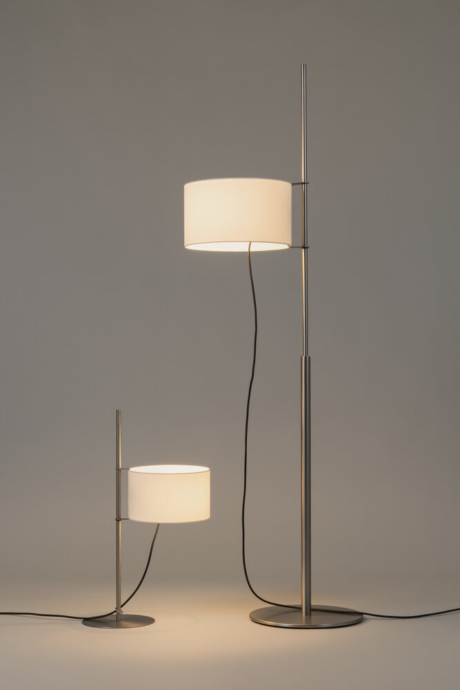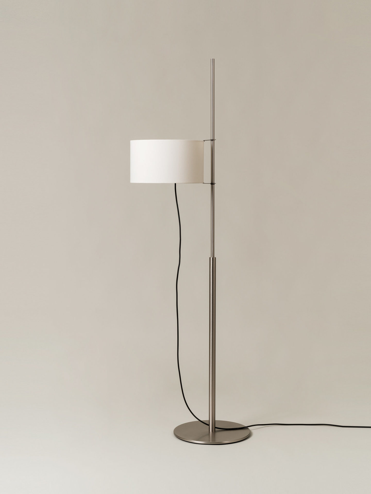 With a structure supported by a circular metal base, the while linen shade of the TMD lamp looks like a sail hoisted on a mast. Whether switched on or off, the TMD manages to add warmth to the space around it. Another example of the timeless sobriety of Miguel Milá.