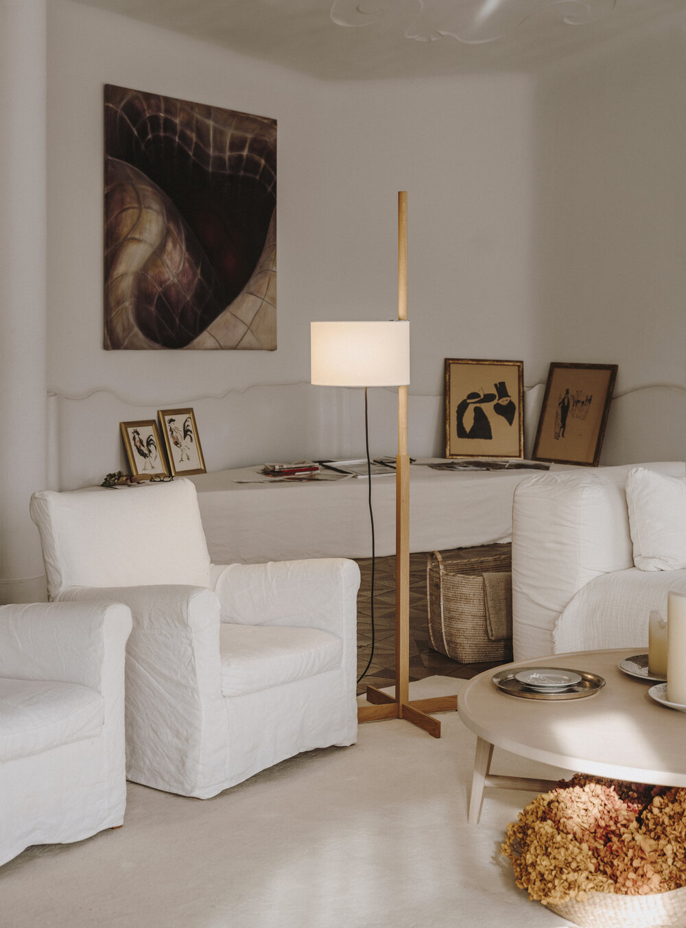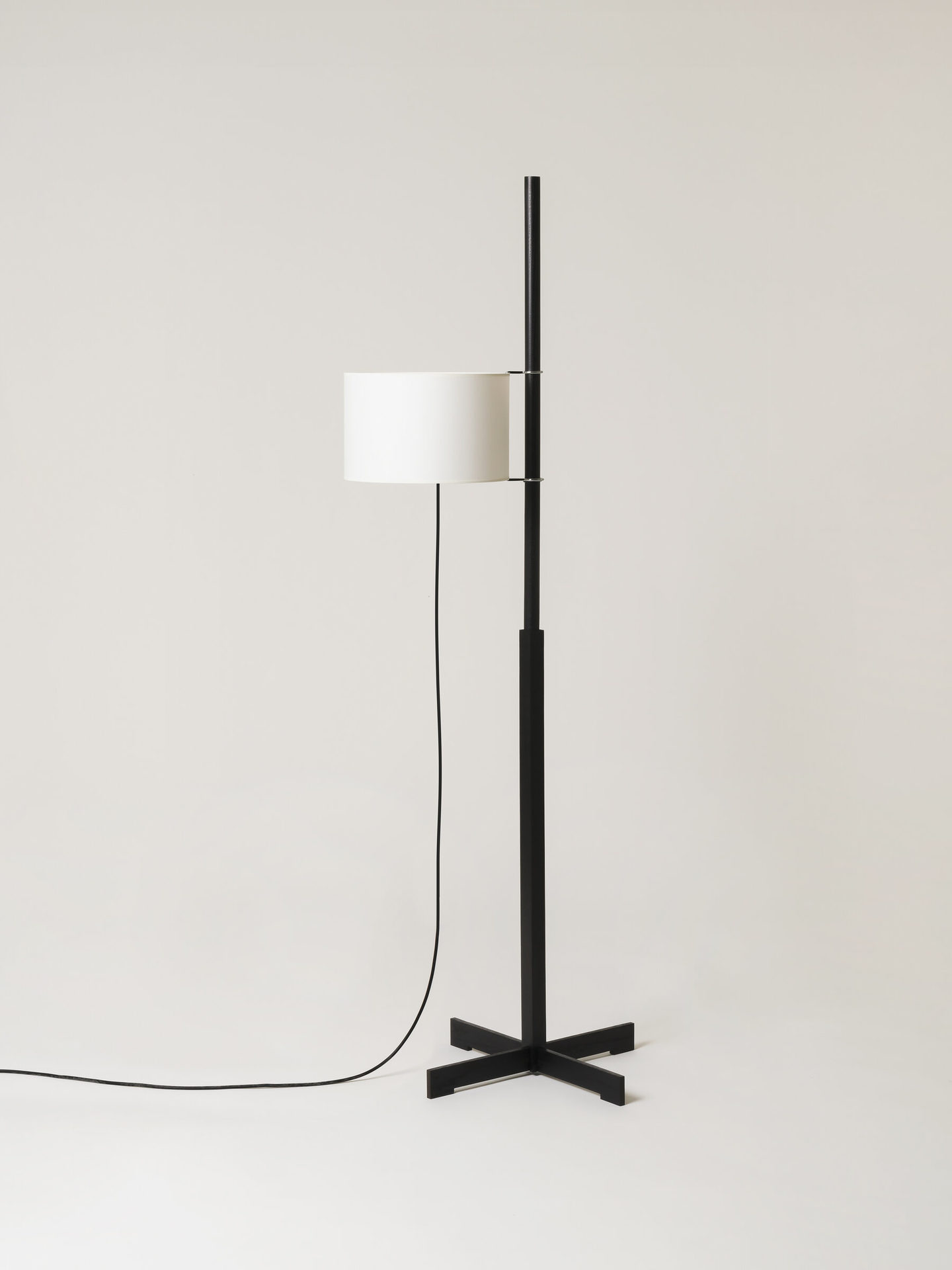 In a flourish of formal serenity and functional efficacy, Miguel Milá cleverly separated the three basic components of any lamp: the structure, the electrical parts and the shade. The light source rotates around the shaft and can be raised or lowered like a flag on a mast.