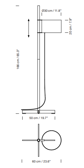 In a flourish of formal serenity and functional efficacy, Miguel Milá cleverly separated the three basic components of any lamp: the structure, the electrical parts and the shade. The light source rotates around the shaft and can be raised or lowered like a flag on a mast.