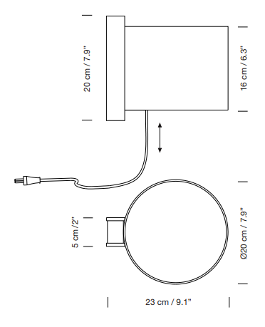 Beech or Walnut Wood Structure,Lampshade in White (optional upper diffuser in white translucent methacrylate - for energy saving bulbs only) or Beige Parchment,Available in two versions: TMM corto (with plug: the light is switched on/off by pulling lightly on the cable or by direct connection to the wall) and TMM Largo.