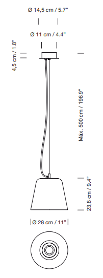 This conical–shaped light bell with its gently curved finish has a wide range of uses. One or many, for domestic or commercial environments. A timeless basic that is as simple as it is efficient. Delicate and pleasing to the eye, but also solid and elementary.