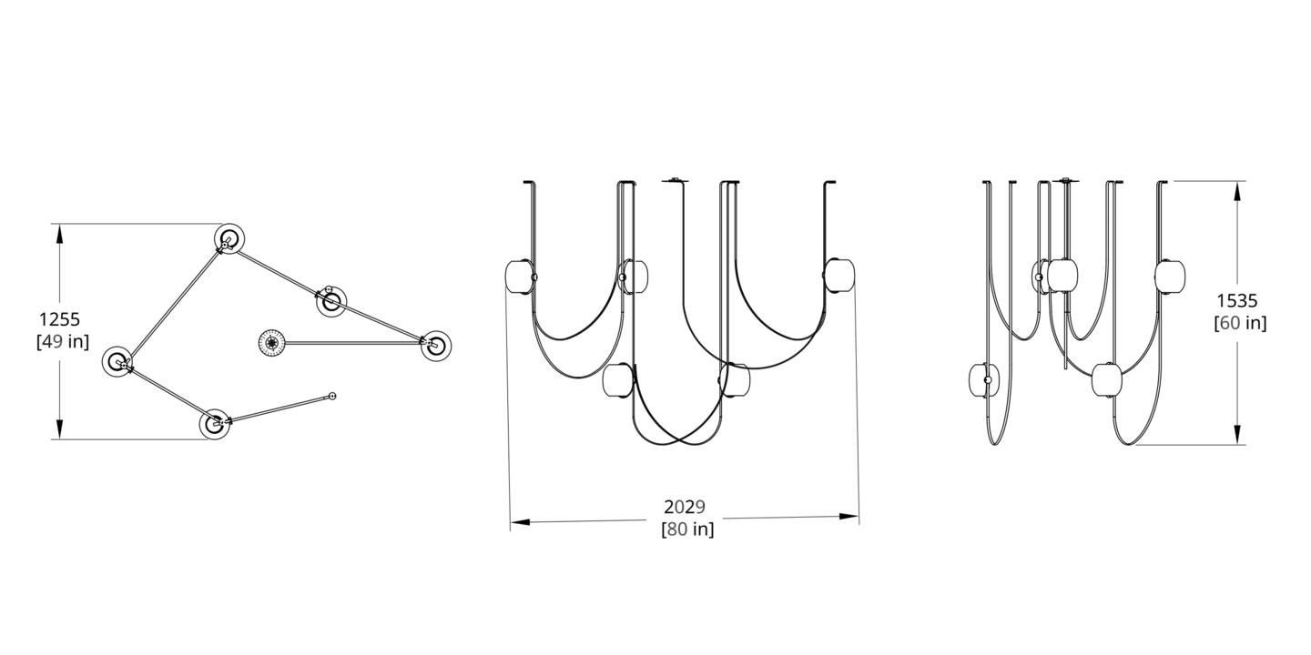 Designed so that no two installations are exactly alike,\xA0Vitis, is a draped modular statement chandelier with customizable possibilities. Its flexible, translucent cables accommodate blown–glass orbs at various heights, giving the appearance of lights floating in space.