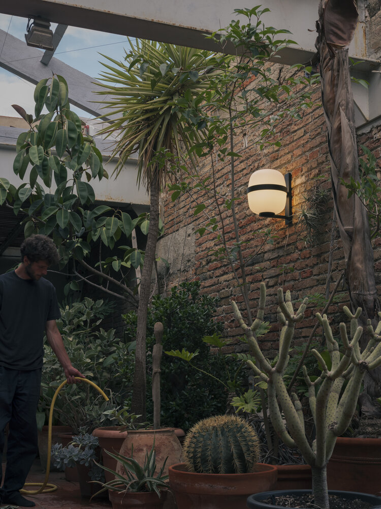 The Cesta family includes its wall versions, Wally Cestita and Wally Cesta, characterized by the globe as a light diffuser and a metallic structure available in black or white. Wally Cesta is the recent incorporation that comes in larger dimensions created to adapt larger spaces and outdoor.