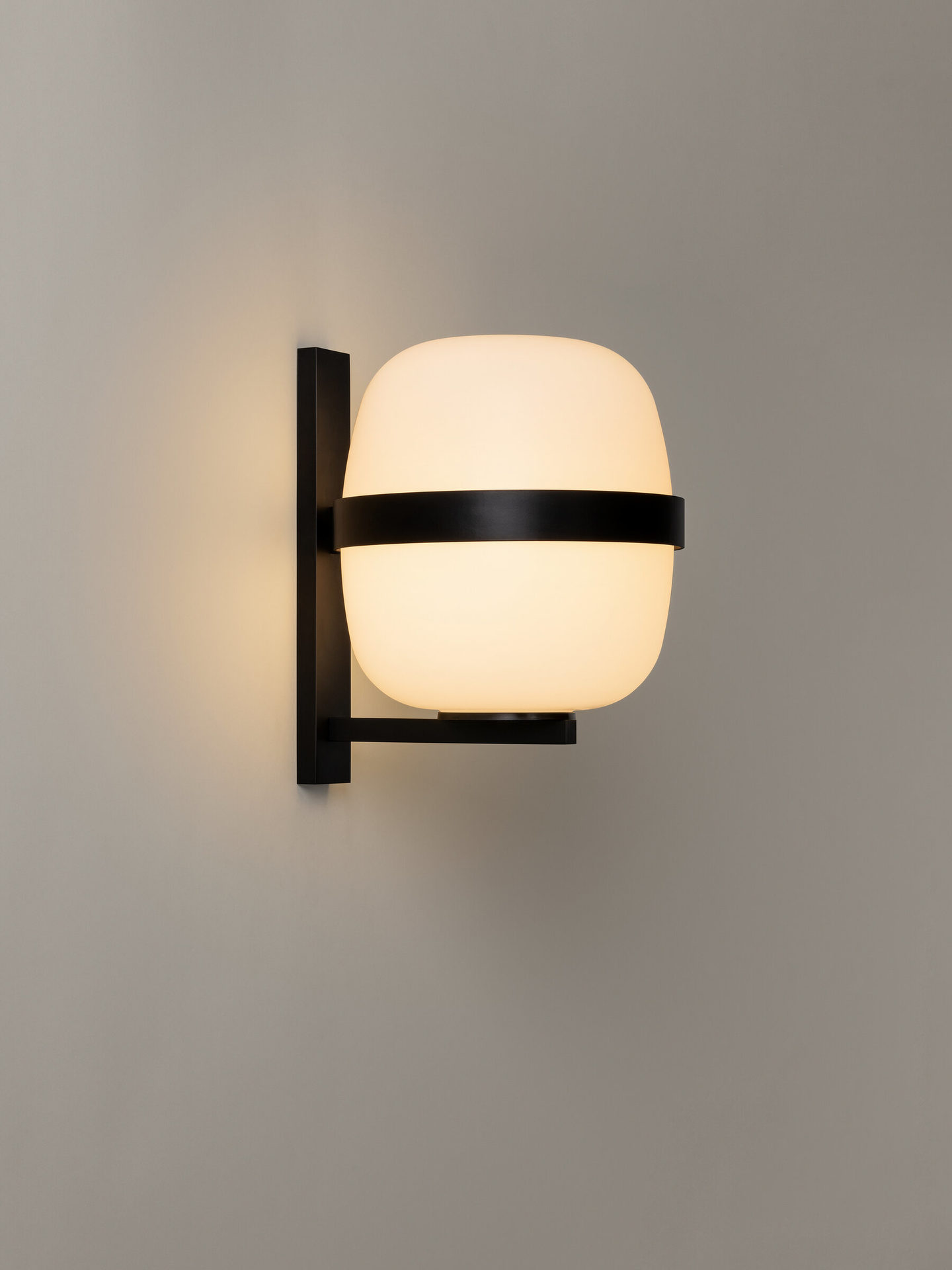 The Cesta family includes its wall versions, Wally Cestita and Wally Cesta, characterised by the globe as a light diffuser and a metallic structure available in black or white. Wally Cesta comes in a larger dimension, which adapts to larger spaces and the outdoor.